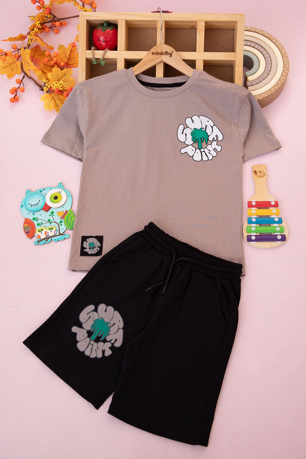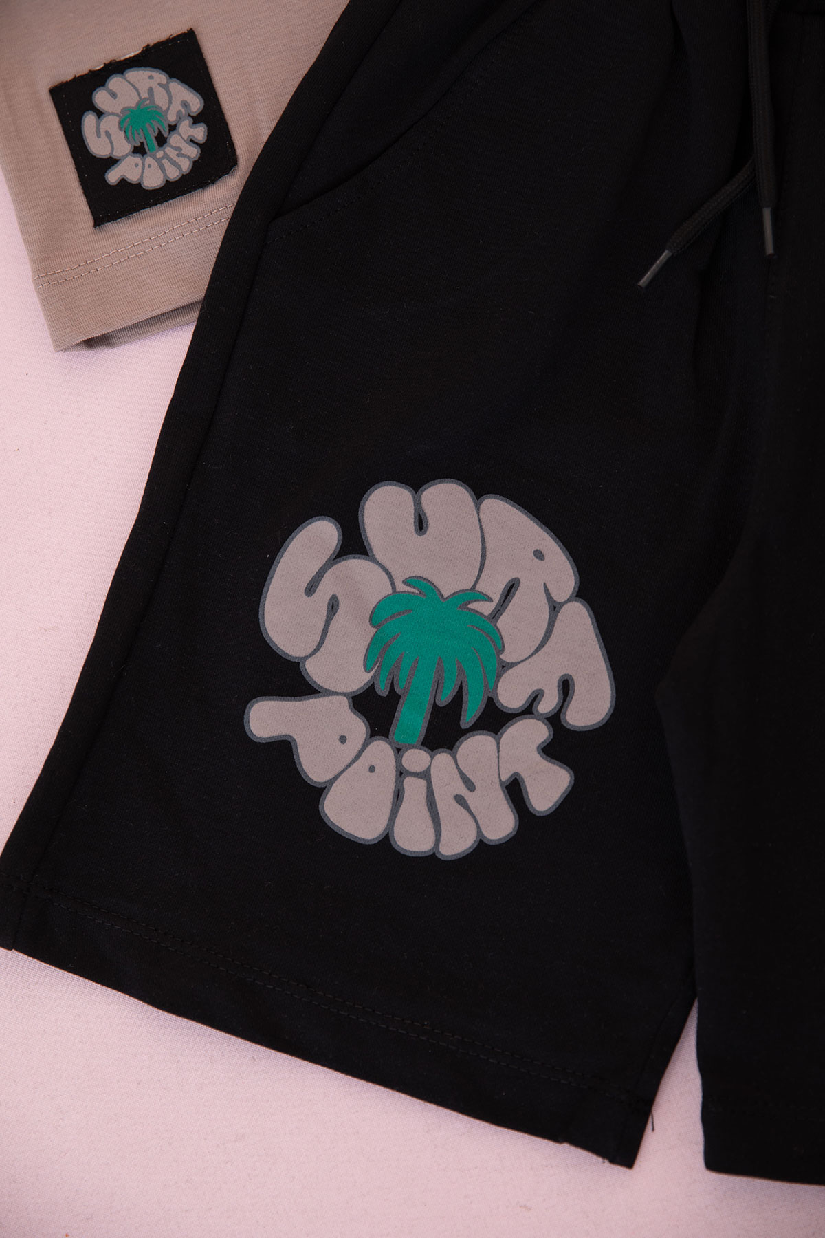 Erkek Çocuk Surf Point Baskılı Şortlu Takım - 26571 (7-10 Yaş)