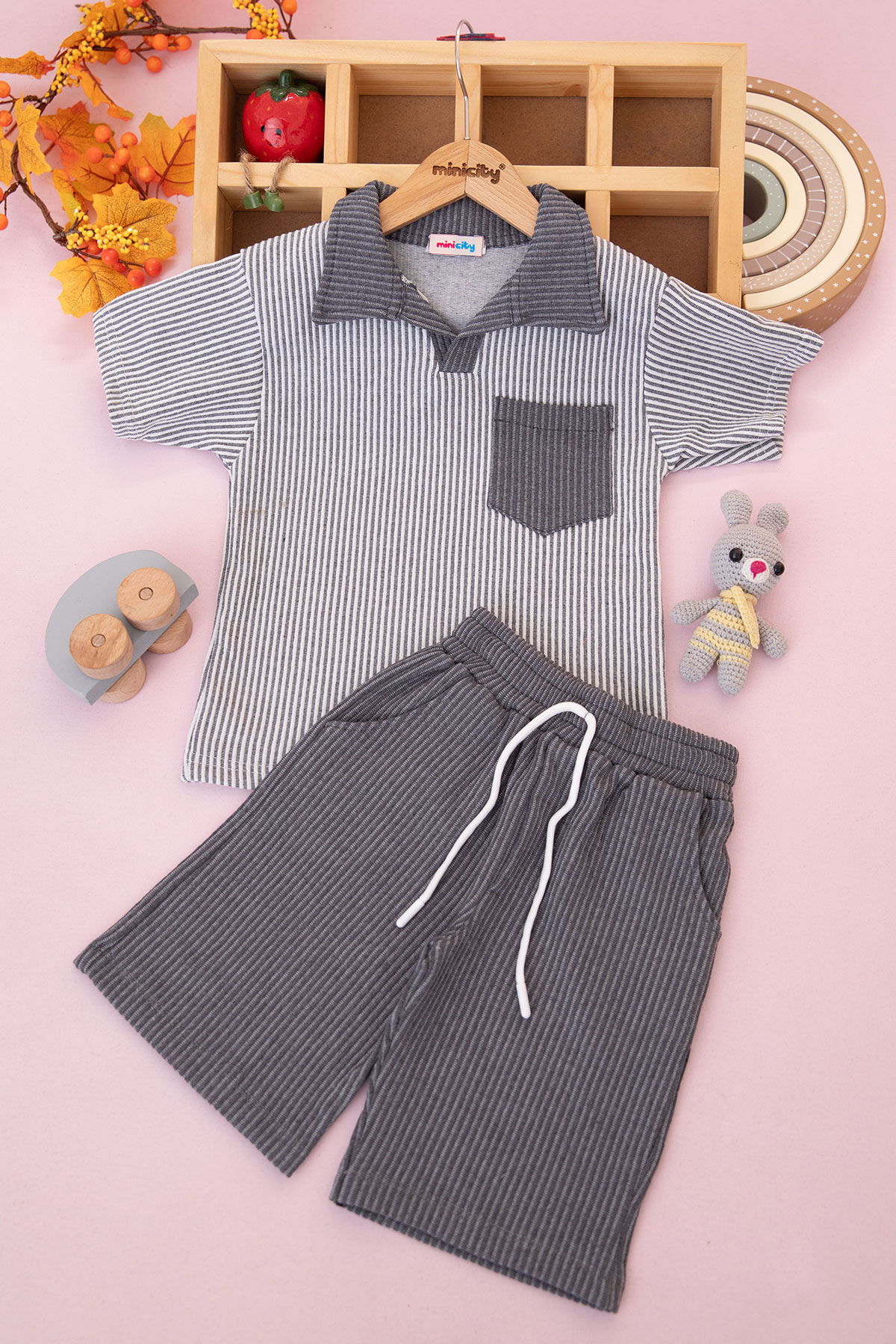 Erkek Çocuk Suyolu Fermuar Cepli Şortlu Takım - 5156 (3-10 Yaş)