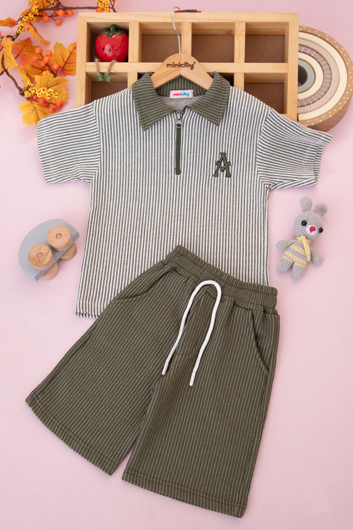 Erkek Çocuk Suyolu Fermuar Şortlu Takım - 5155 (3-10 Yaş)