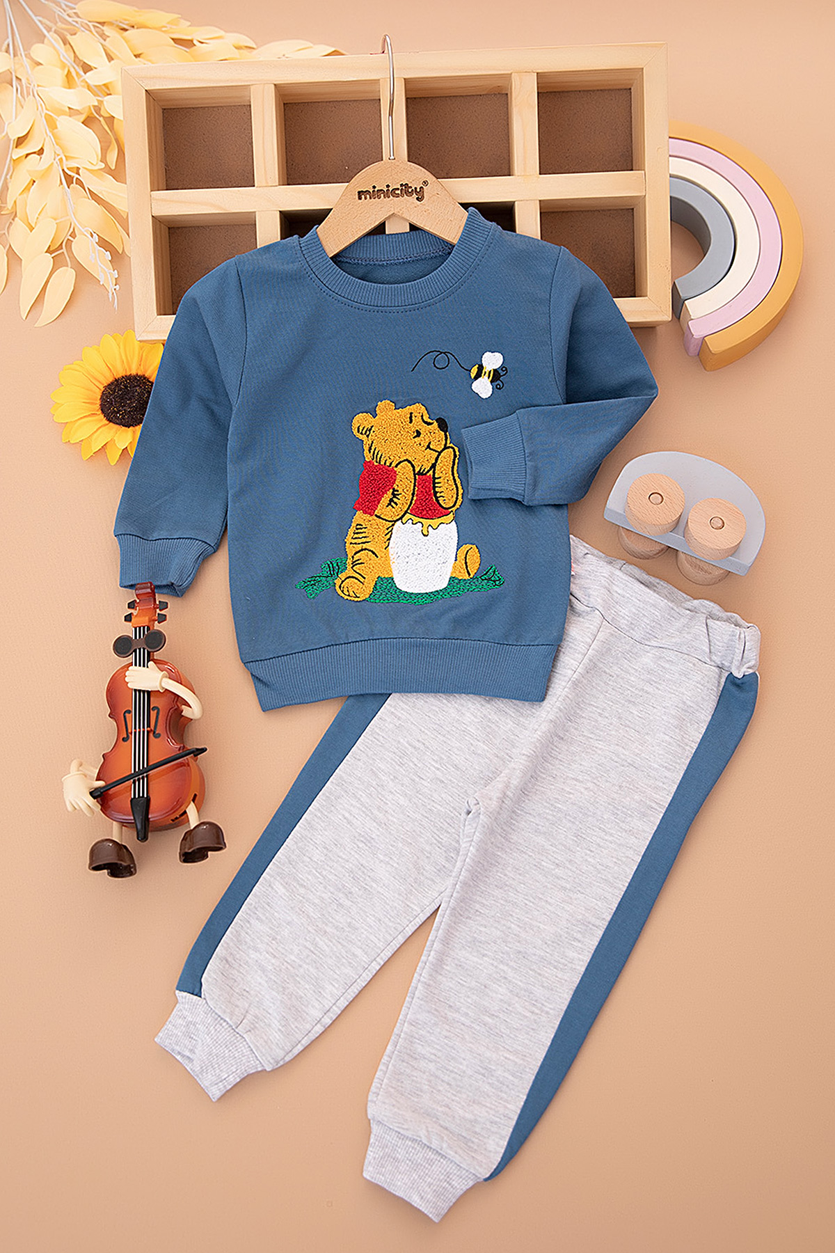 Erkek Çocuk Süzene Arılı Ayı Nakışlı Takım - 1050 (1-3 Yaş)