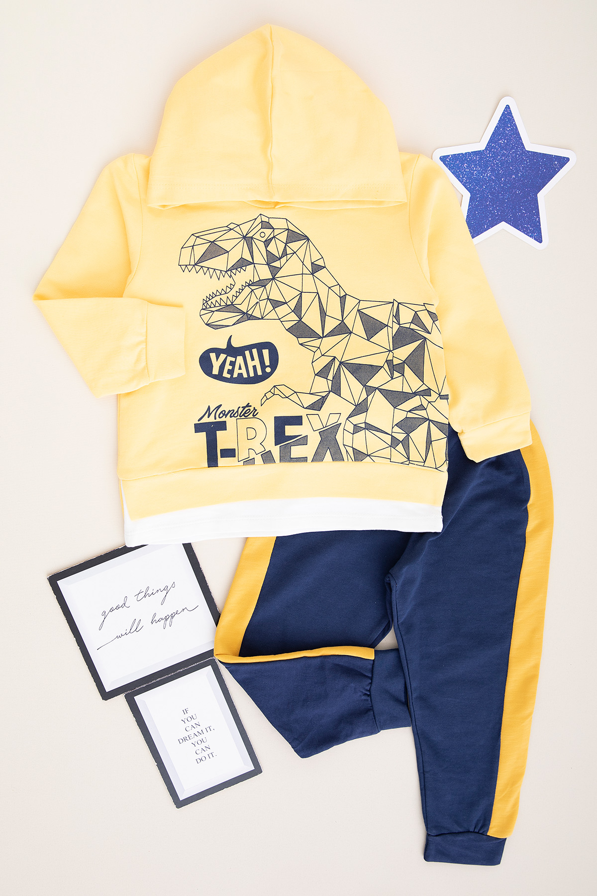 Erkek Çocuk T-Rex Baskılı Kapşonlu Takım - 5032 (3-7 Yaş)