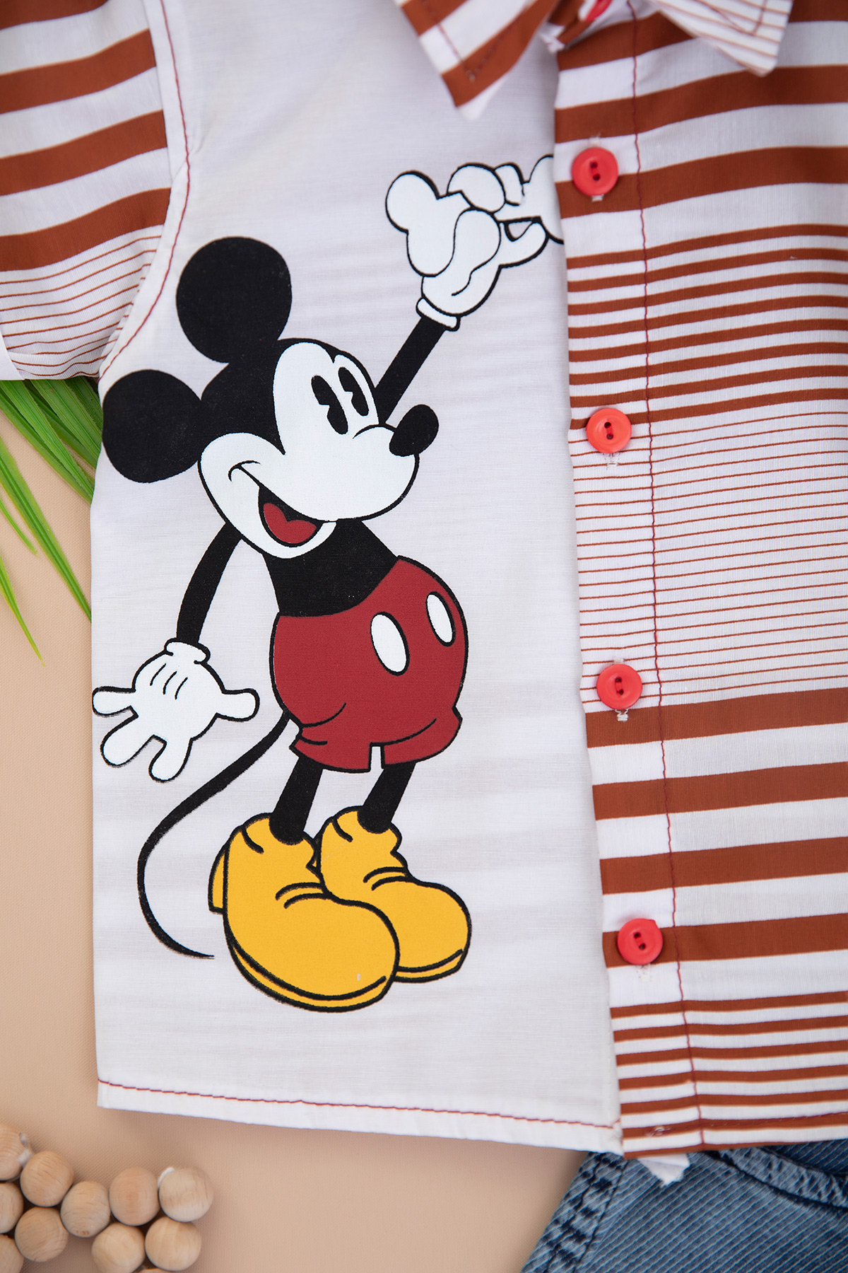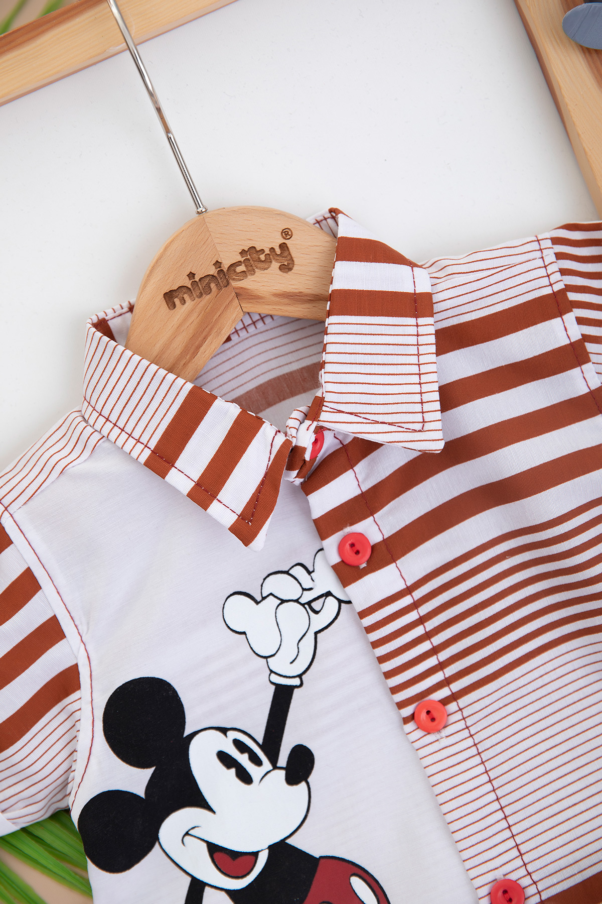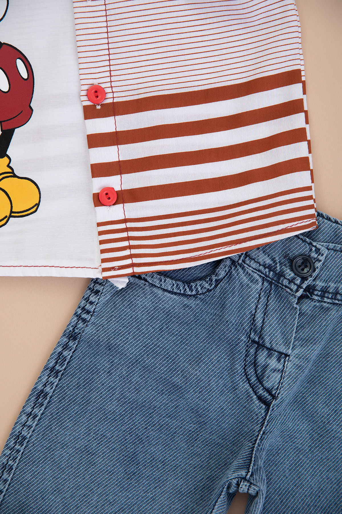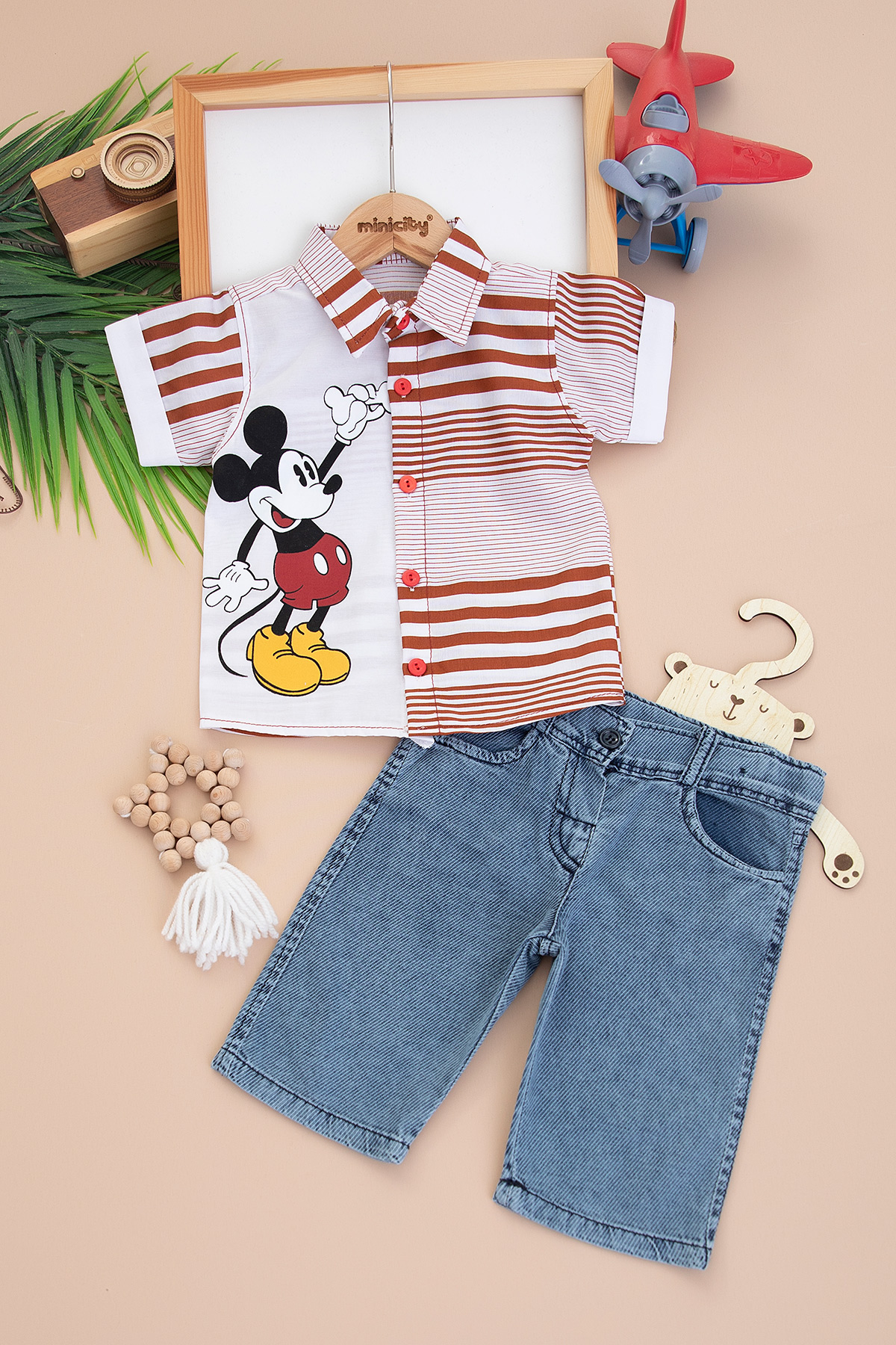 Erkek Çocuk Tavşan Baskılı Gömlek Kot Kaprili Takım (1-4 Yaş)