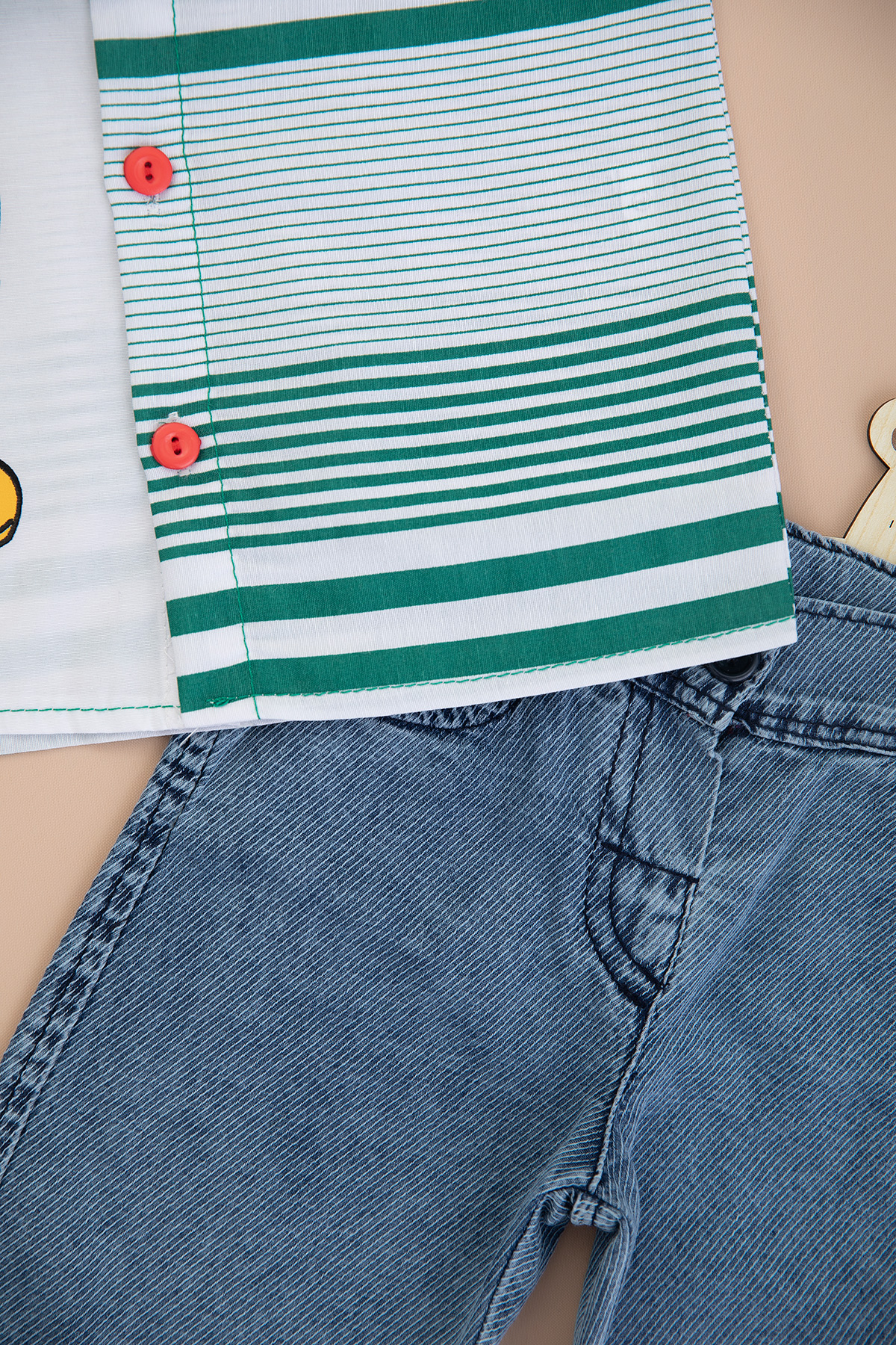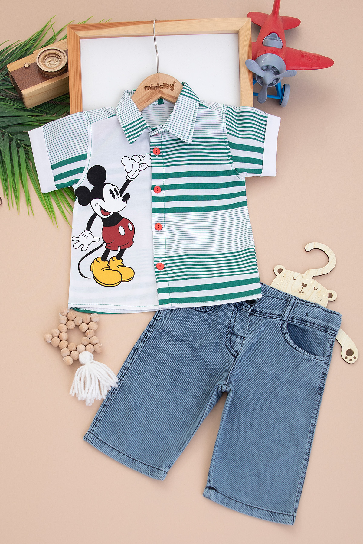 Erkek Çocuk Tavşan Baskılı Gömlek Kot Kaprili Takım (1-4 Yaş)