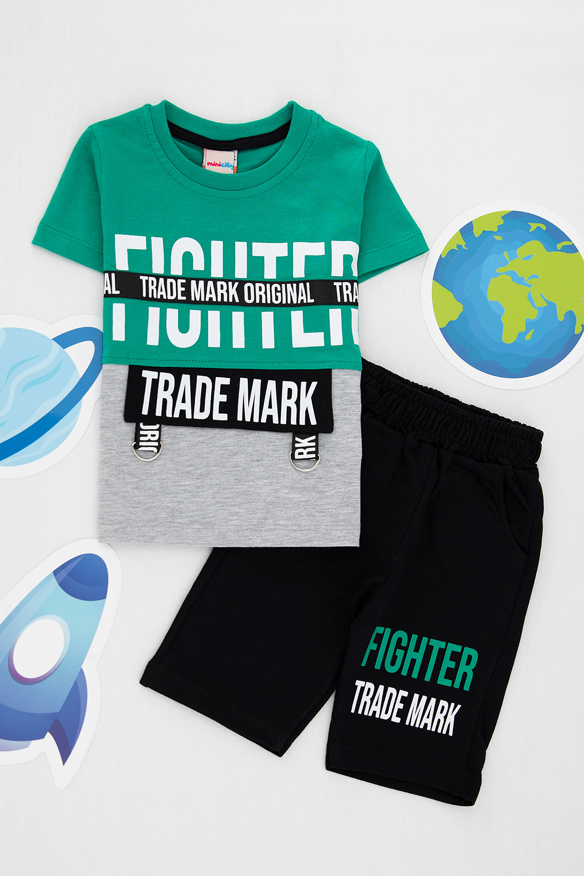 Erkek Çocuk Trade Mark Baskılı Şortlu Takım - M-309 (1-4 Yaş)