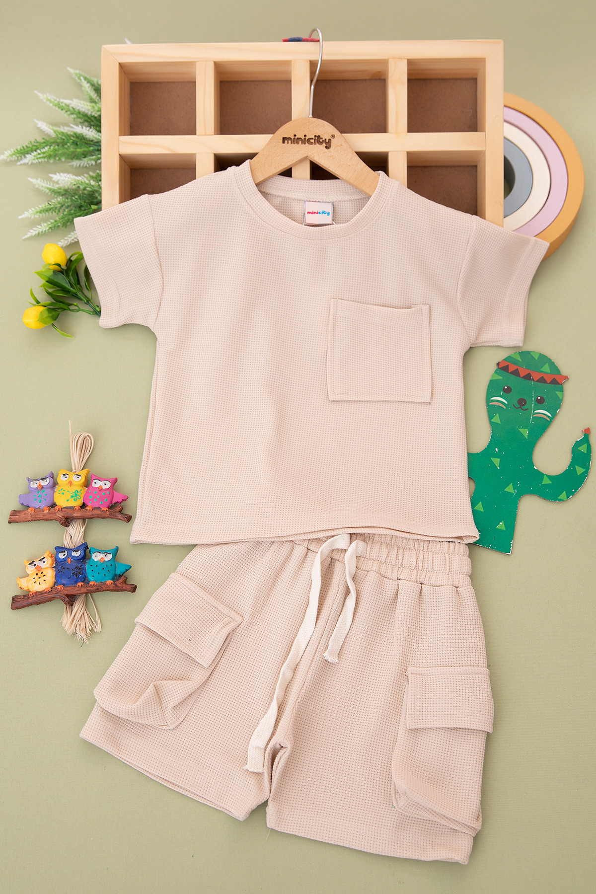Erkek Çocuk Waffle Cepli Şortlu Takım - 2416 (3-10 Yaş)