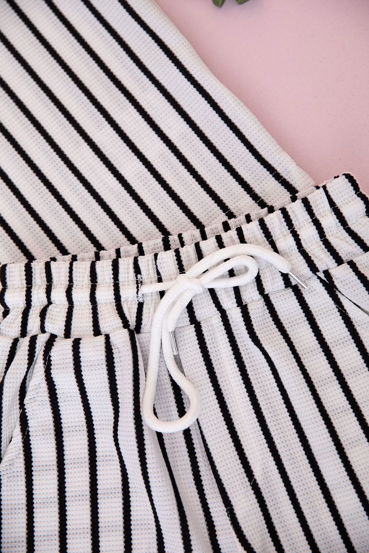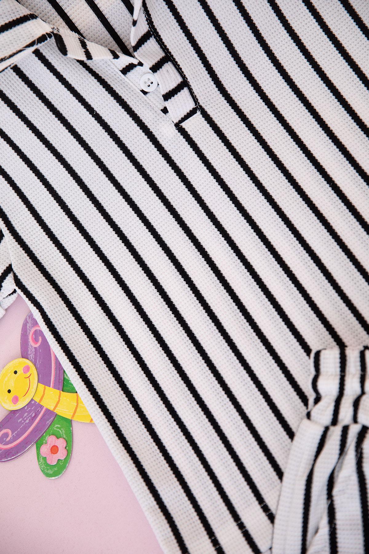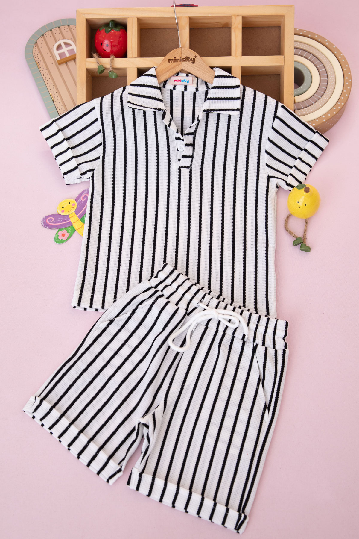 Erkek Çocuk Waffle Çizgili Düğmeli Şortlu Takım - 2001 (6-10 Yaş)
