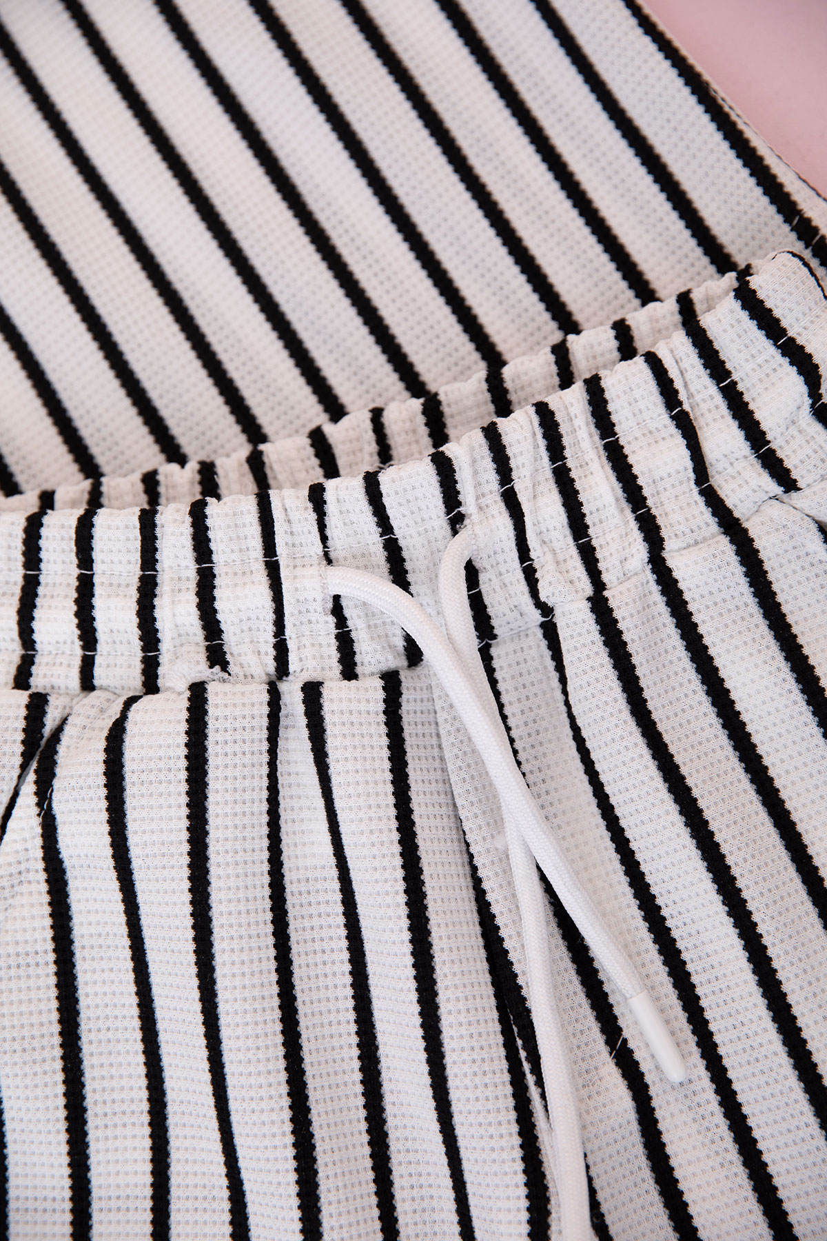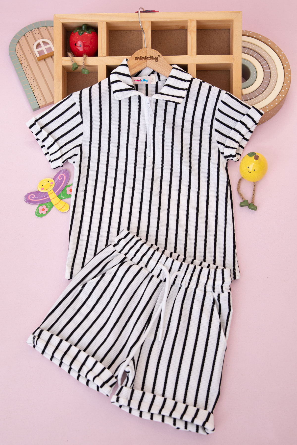Erkek Çocuk Waffle Çizgili Fermuarlı Şortlu Takım - 2003 (6-10 Yaş)