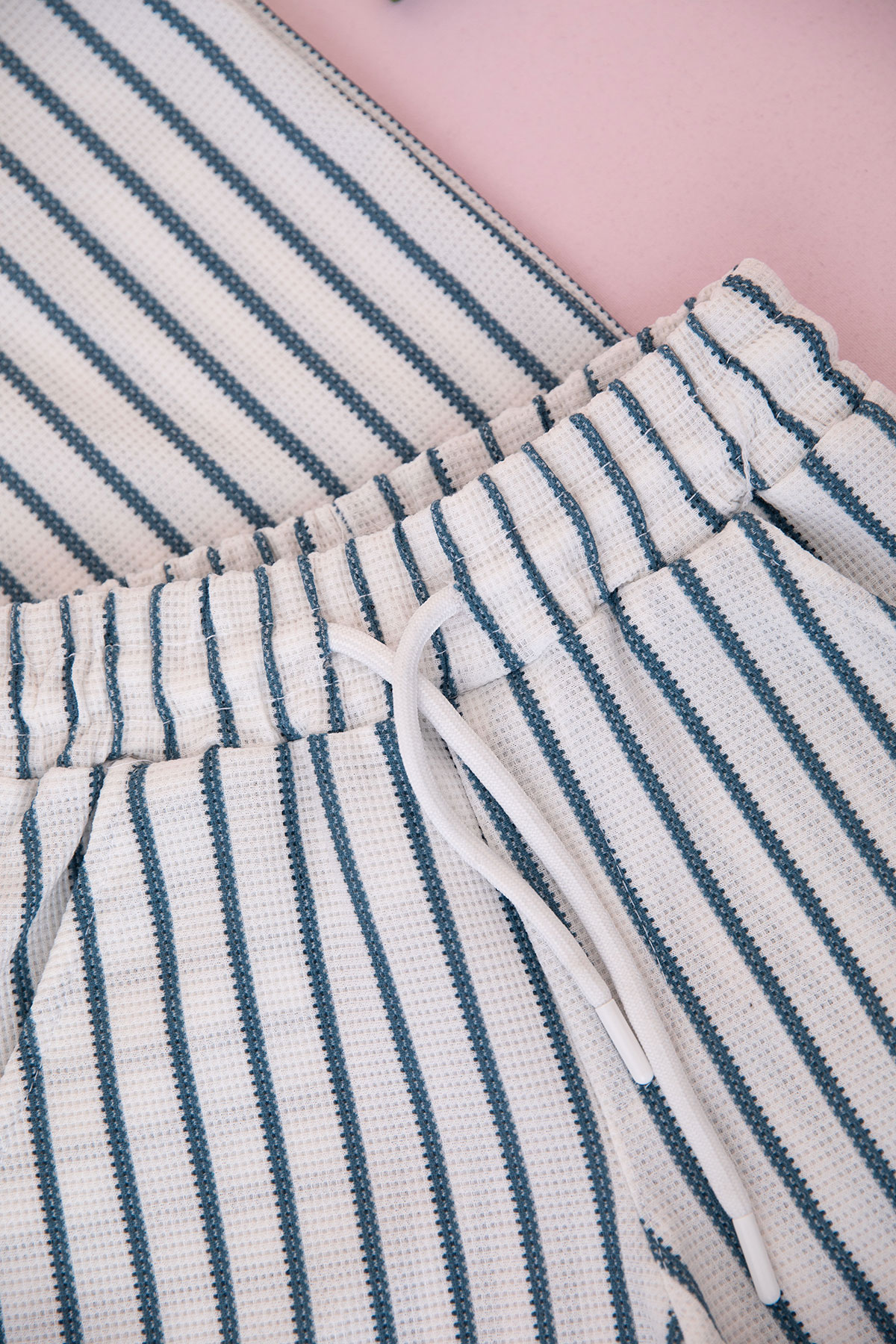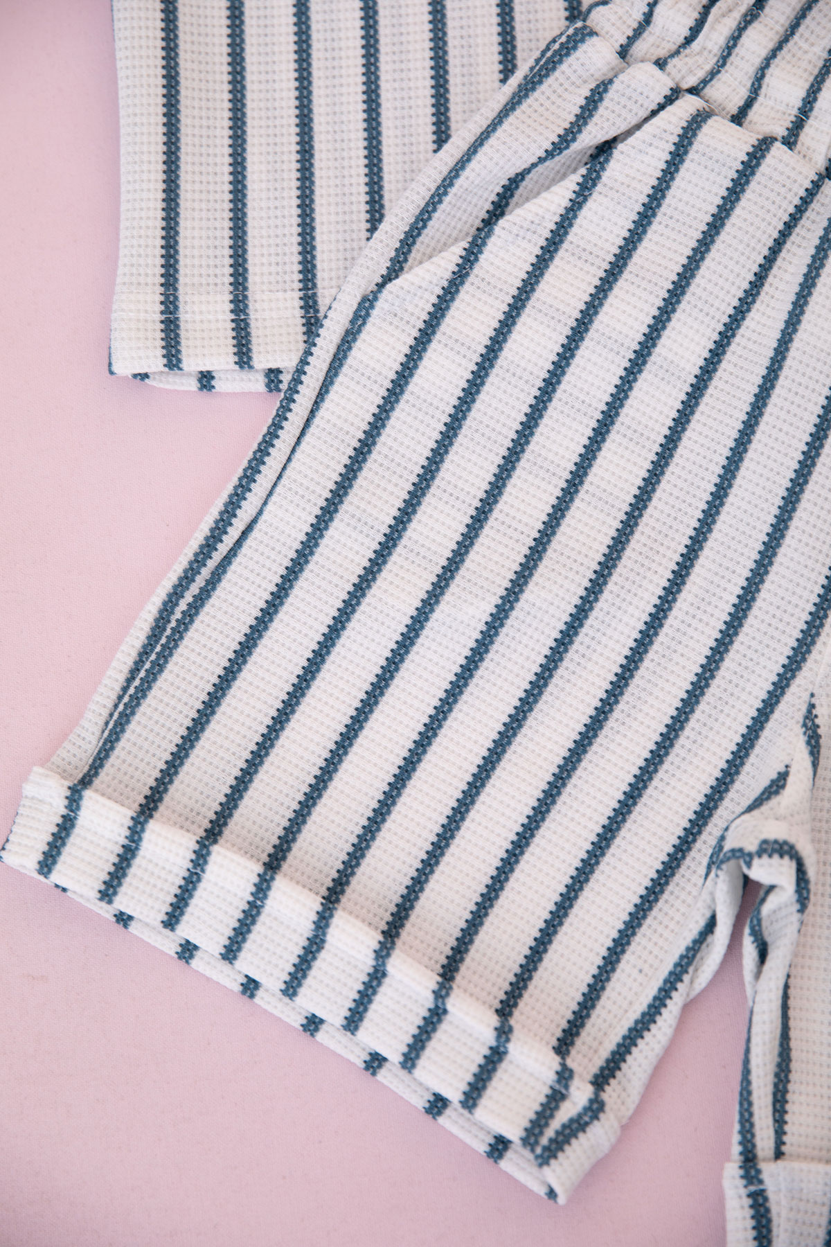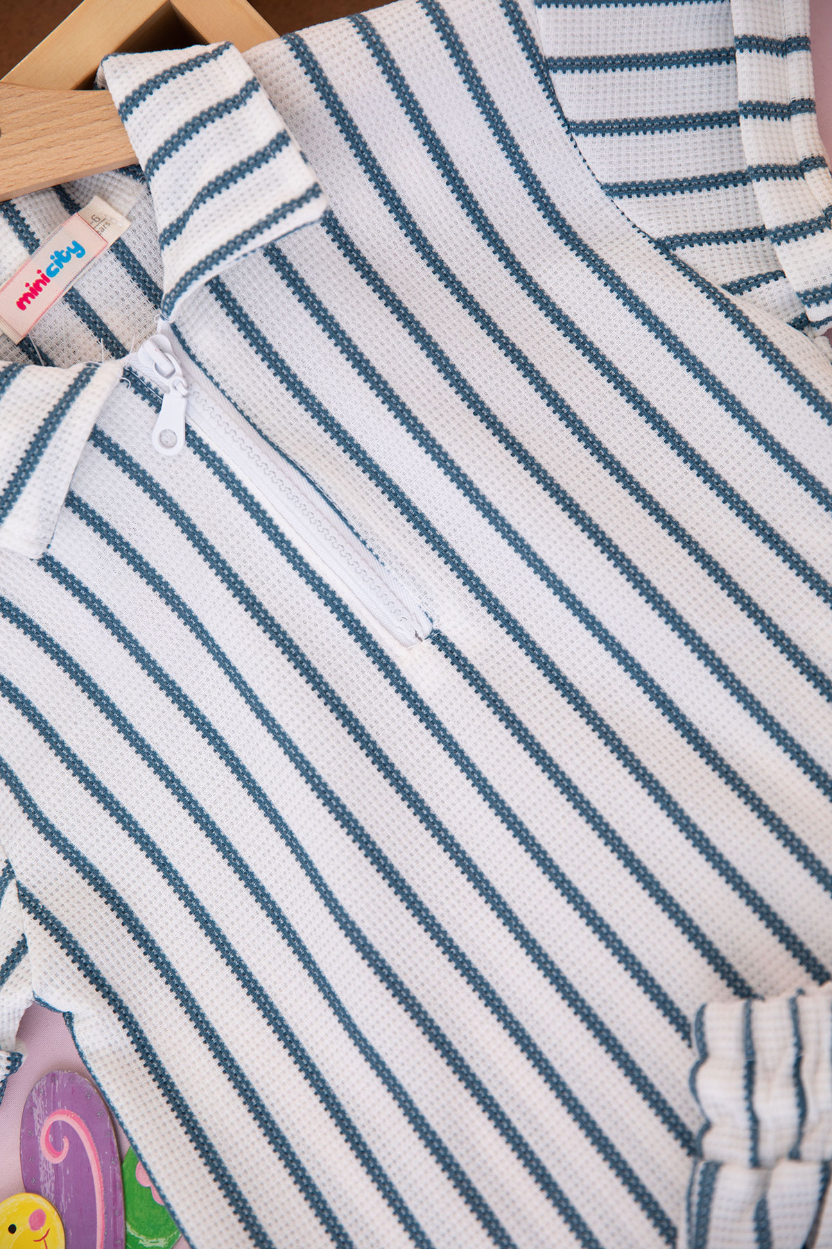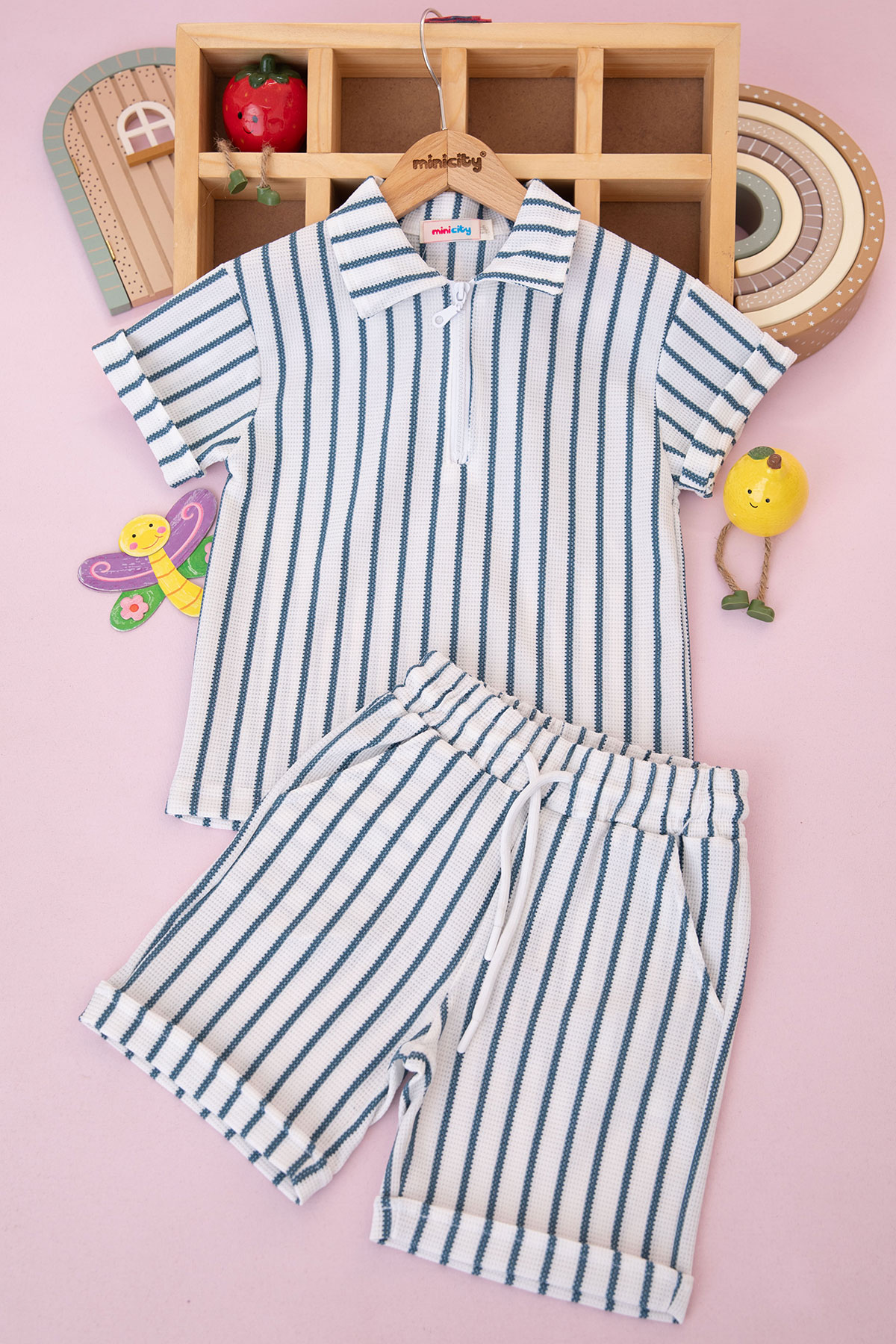 Erkek Çocuk Waffle Çizgili Fermuarlı Şortlu Takım - 2004 (11-15 Yaş)