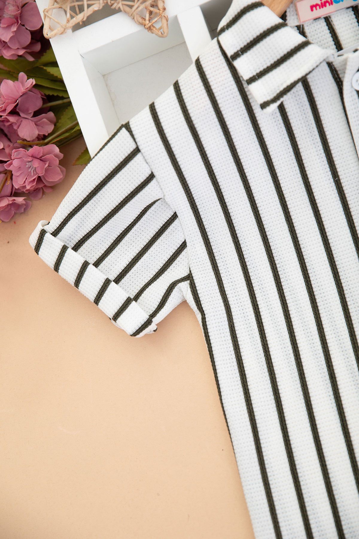 Erkek Çocuk Waffle Çizgili Gömlek Şortlu Takım - 2005 (6-10 Yaş)
