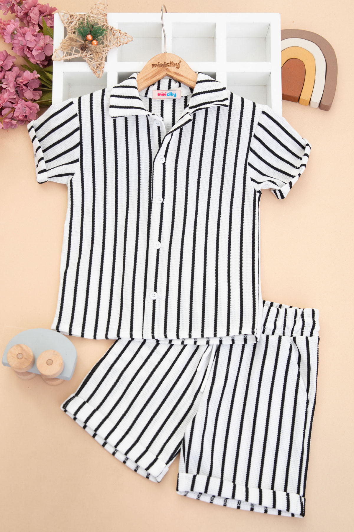 Erkek Çocuk Waffle Çizgili Gömlek Şortlu Takım - 2006 (11-15 Yaş)