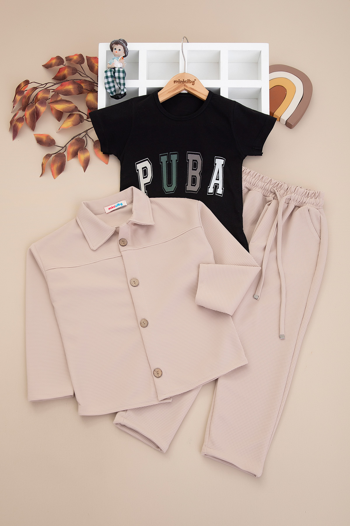 Erkek Çocuk Waffle Üçlü Takım - 27427-2 (6-9 yaş)