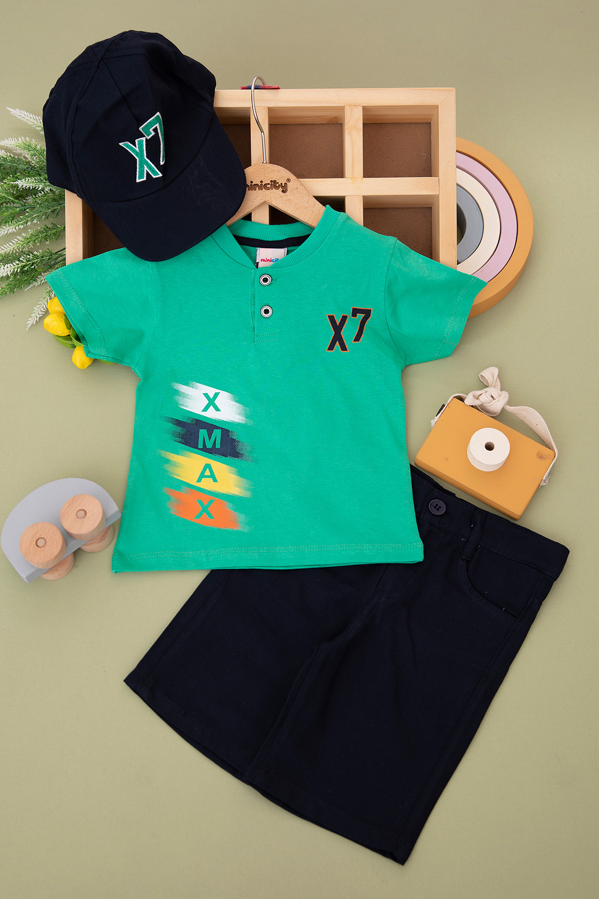 Erkek Çocuk X7 Şapkalı Şortlu Takım - 2069 (3-6 Yaş)