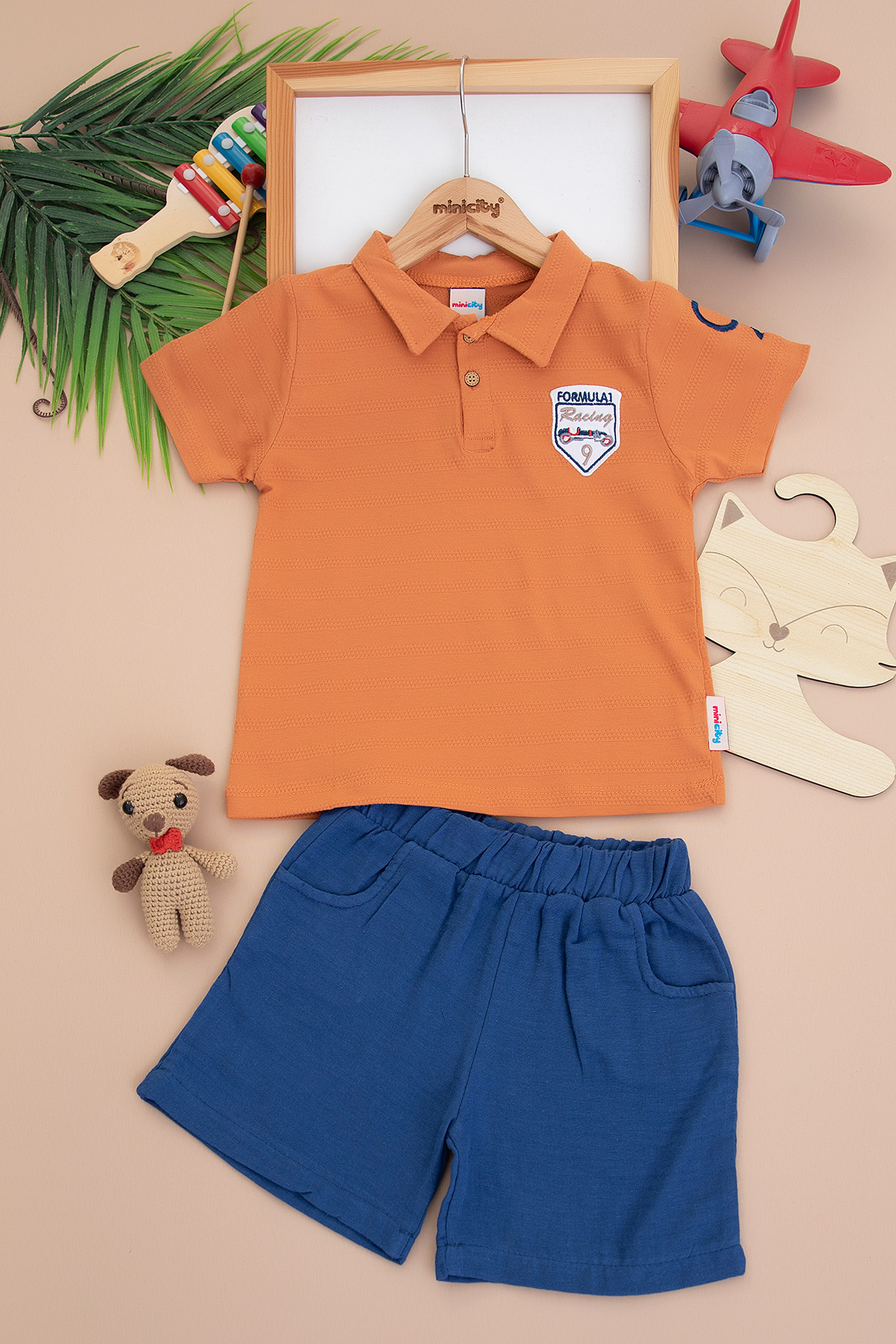 Erkek Çocuk Yakalı Nakışlı Şortlu Takım - 24137 (3-6 Yaş)