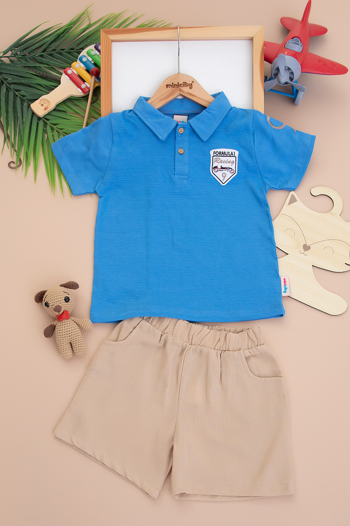 Erkek Çocuk Yakalı Nakışlı Şortlu Takım - 24137 (3-6 Yaş)
