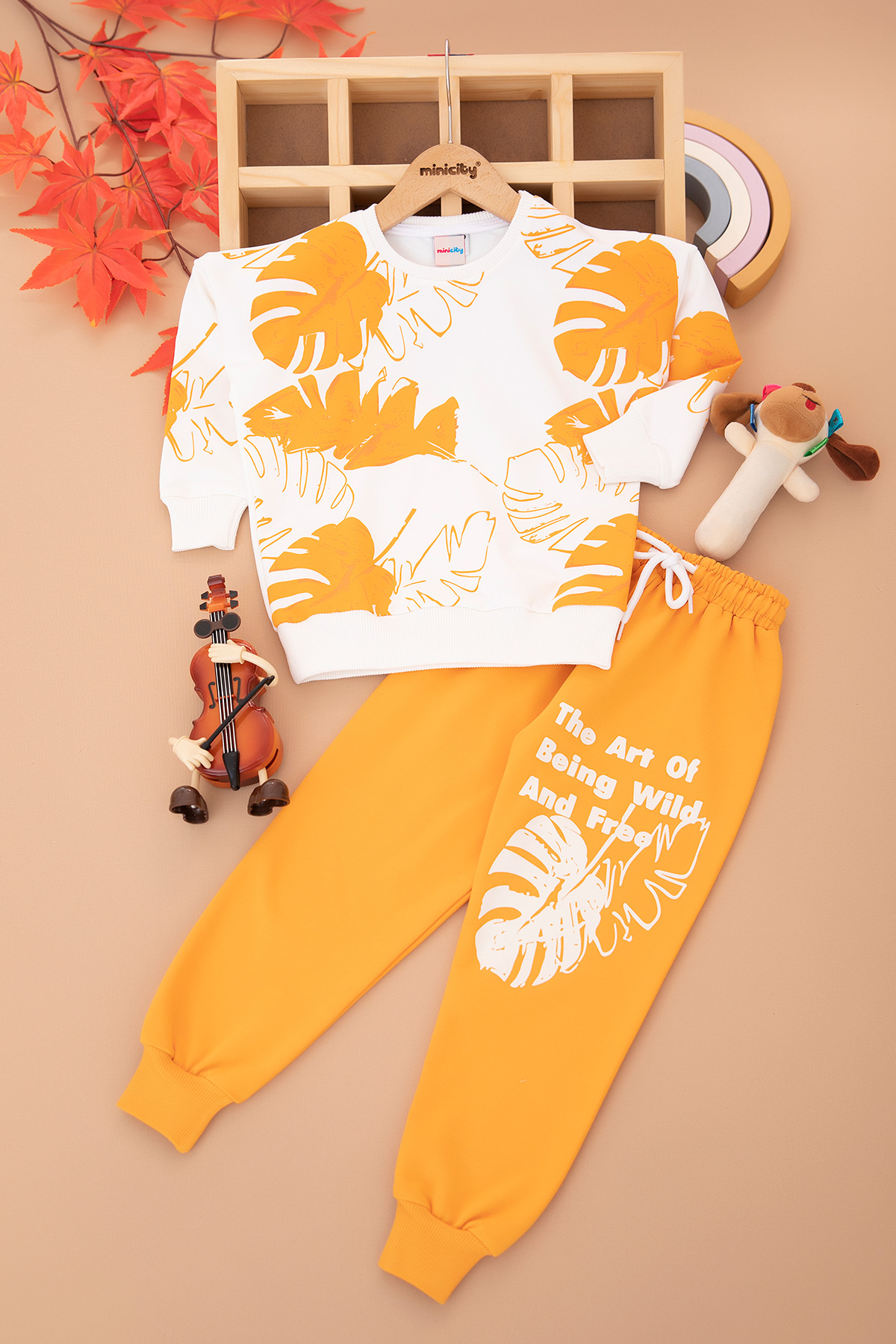 Erkek Çocuk Yaprak Baskılı O Yaka Takım (3-9 Yaş)