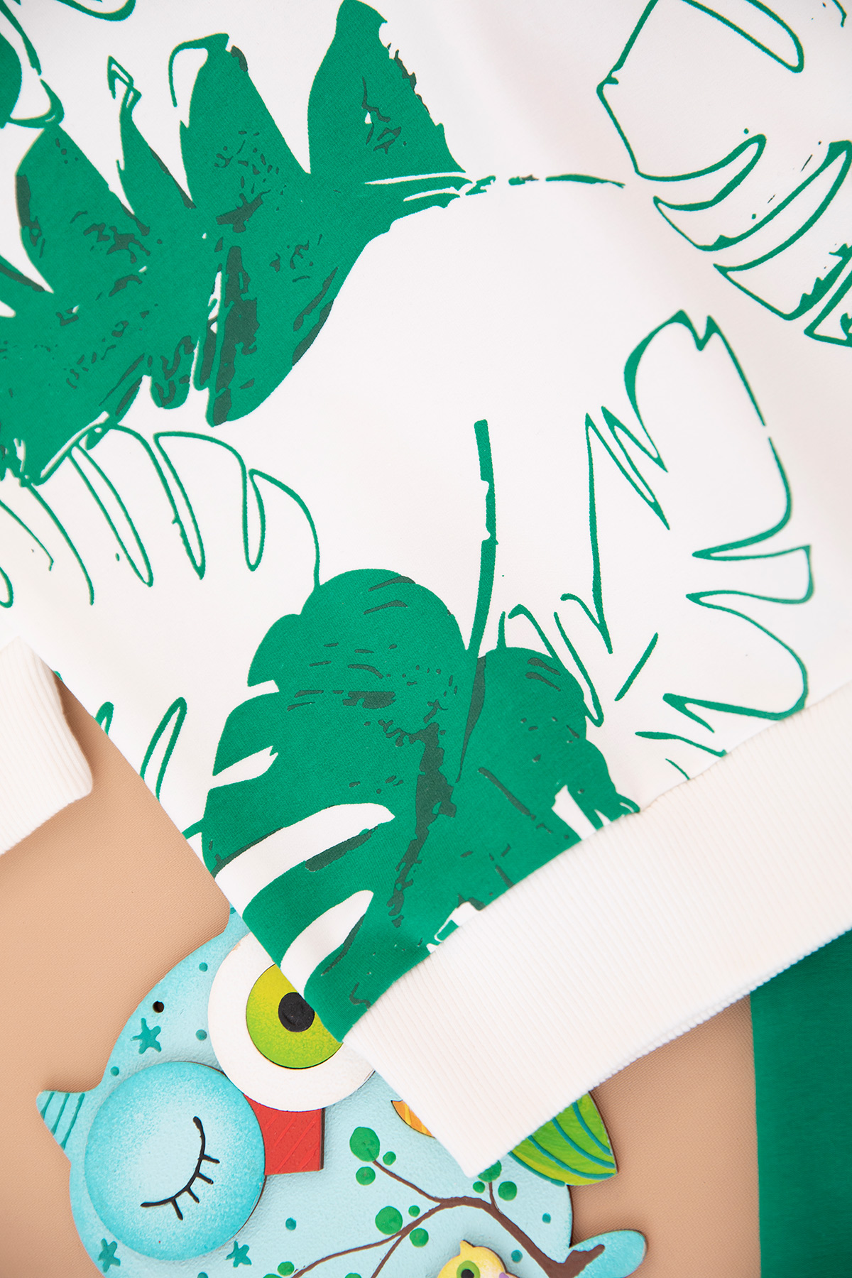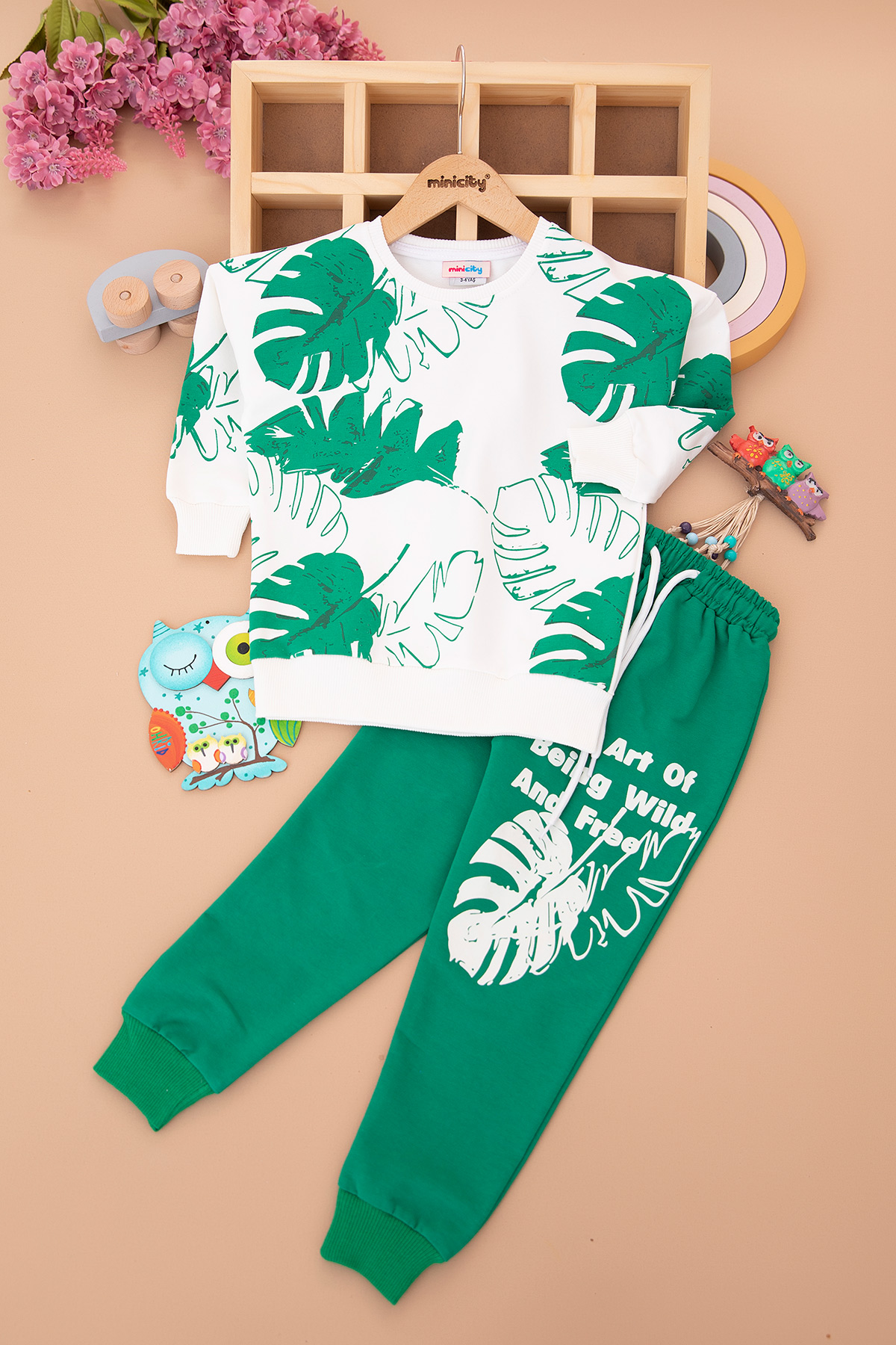 Erkek Çocuk Yaprak Baskılı O Yaka Takım (3-9 Yaş)