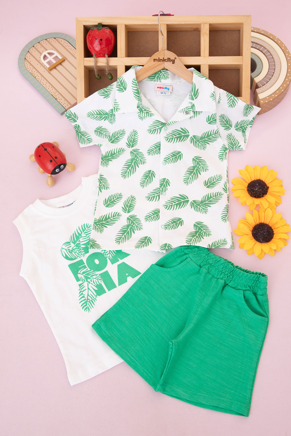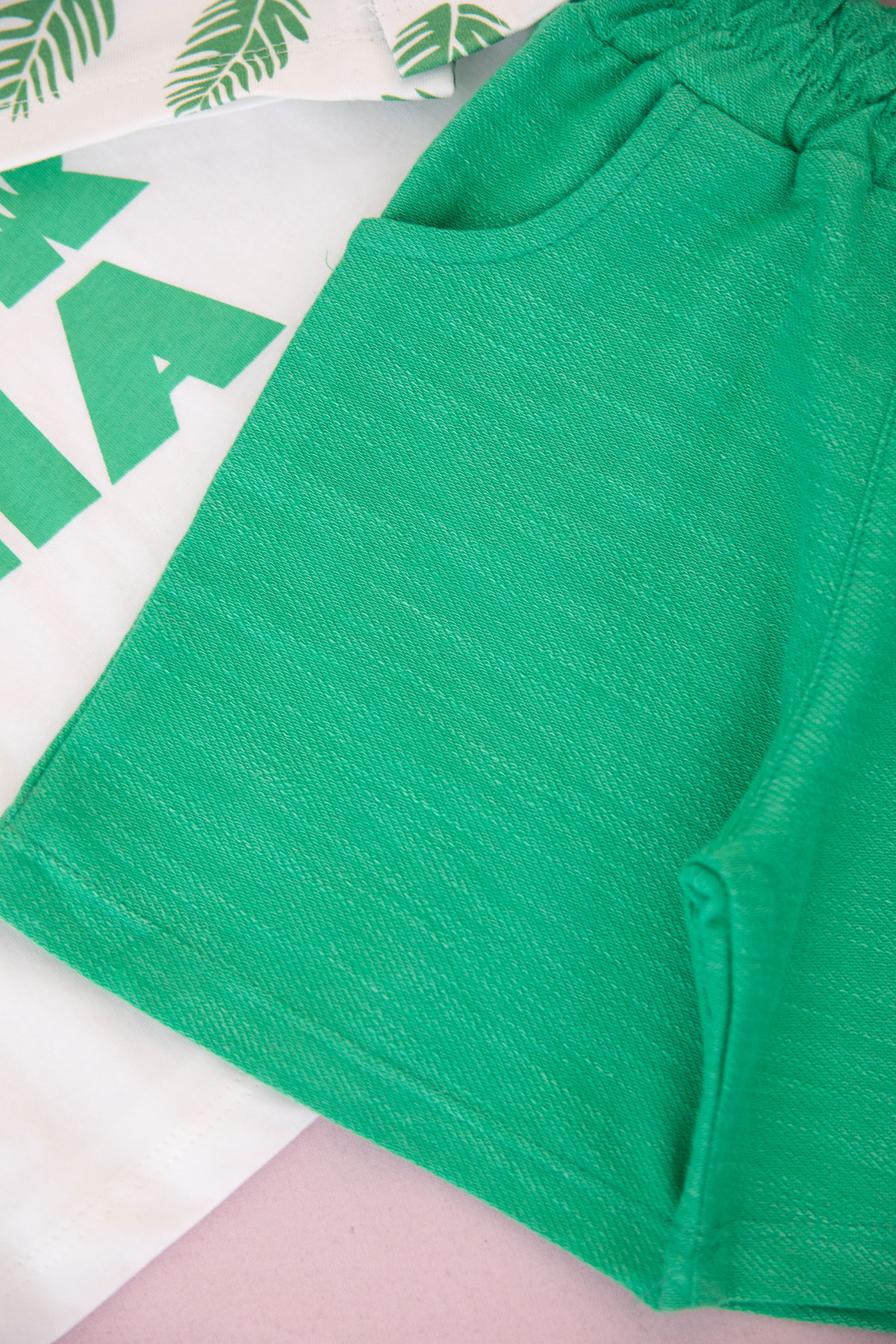 Erkek Çocuk Yaprak Baskılı Şortlu Takım - 26523 (3-6 Yaş)