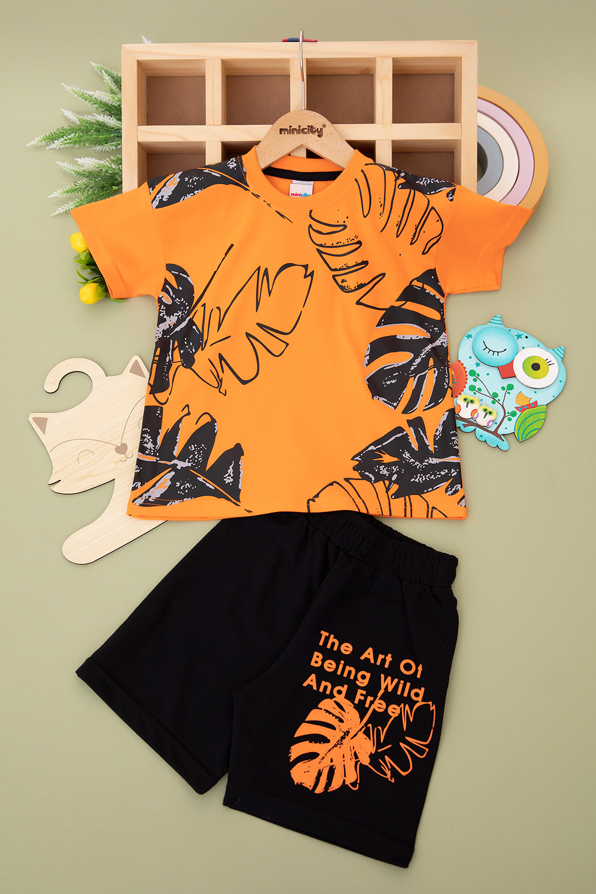 Erkek Çocuk Yaprak Baskılı Şortlu Takım (4-10 Yaş)