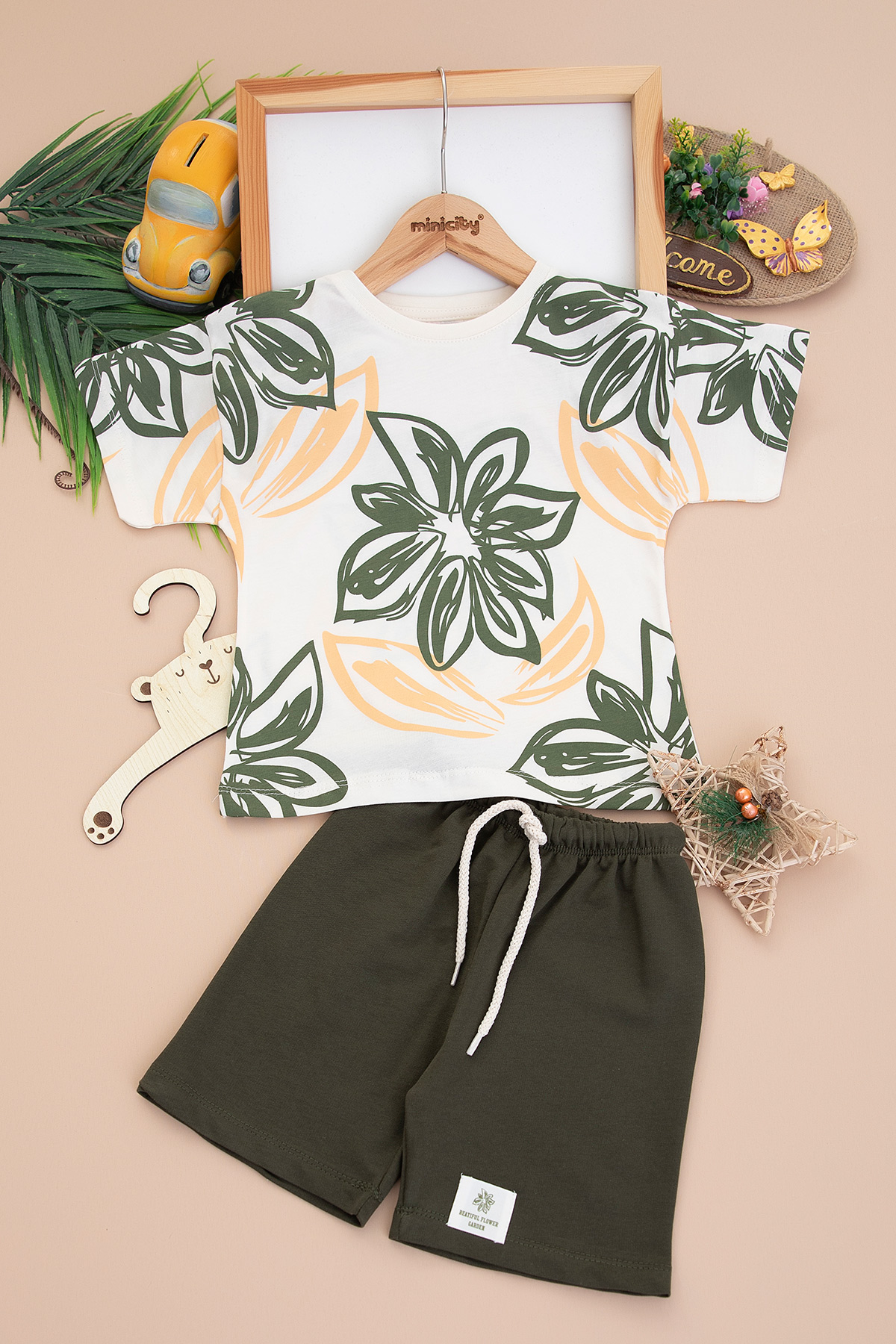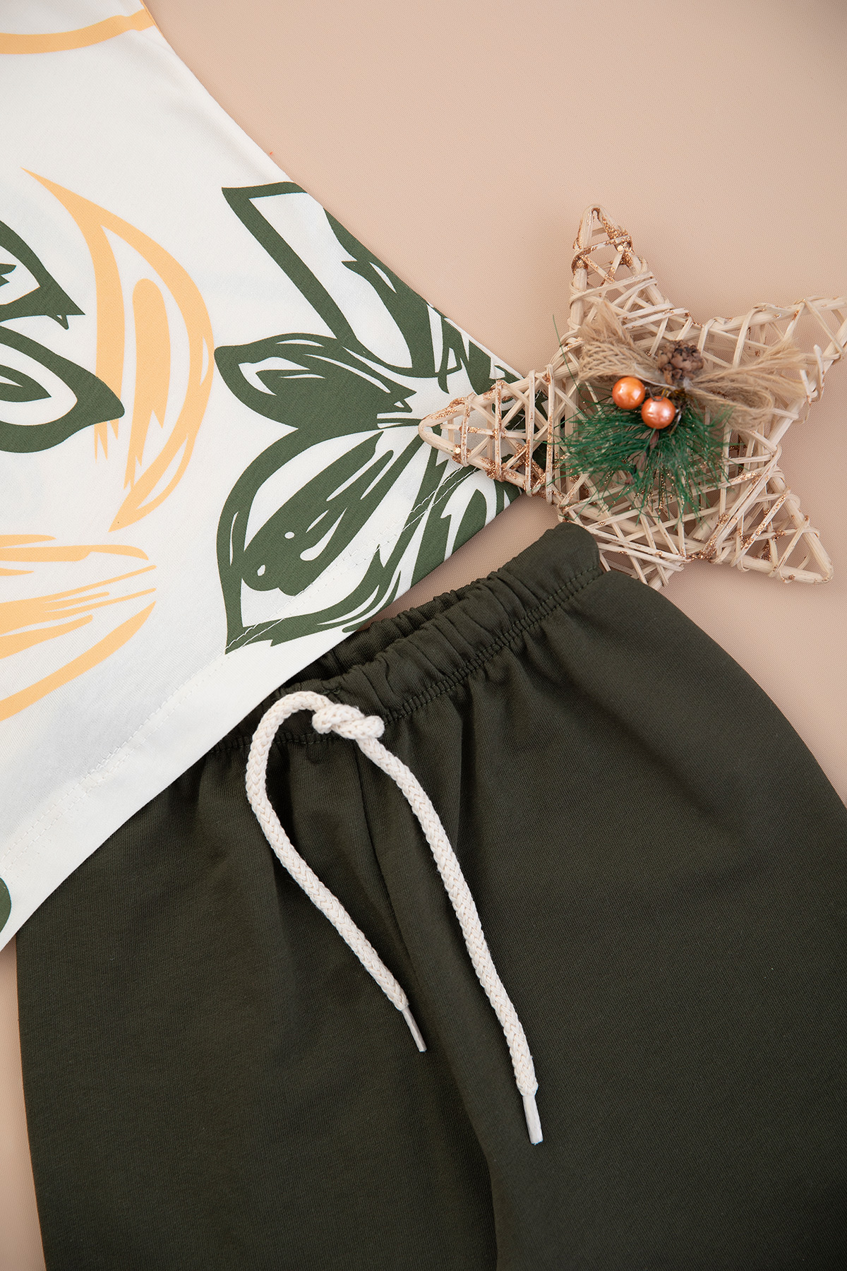 Erkek Çocuk Yaprak Baskılı Şortlu Takım - 7646 (1-6 Yaş)