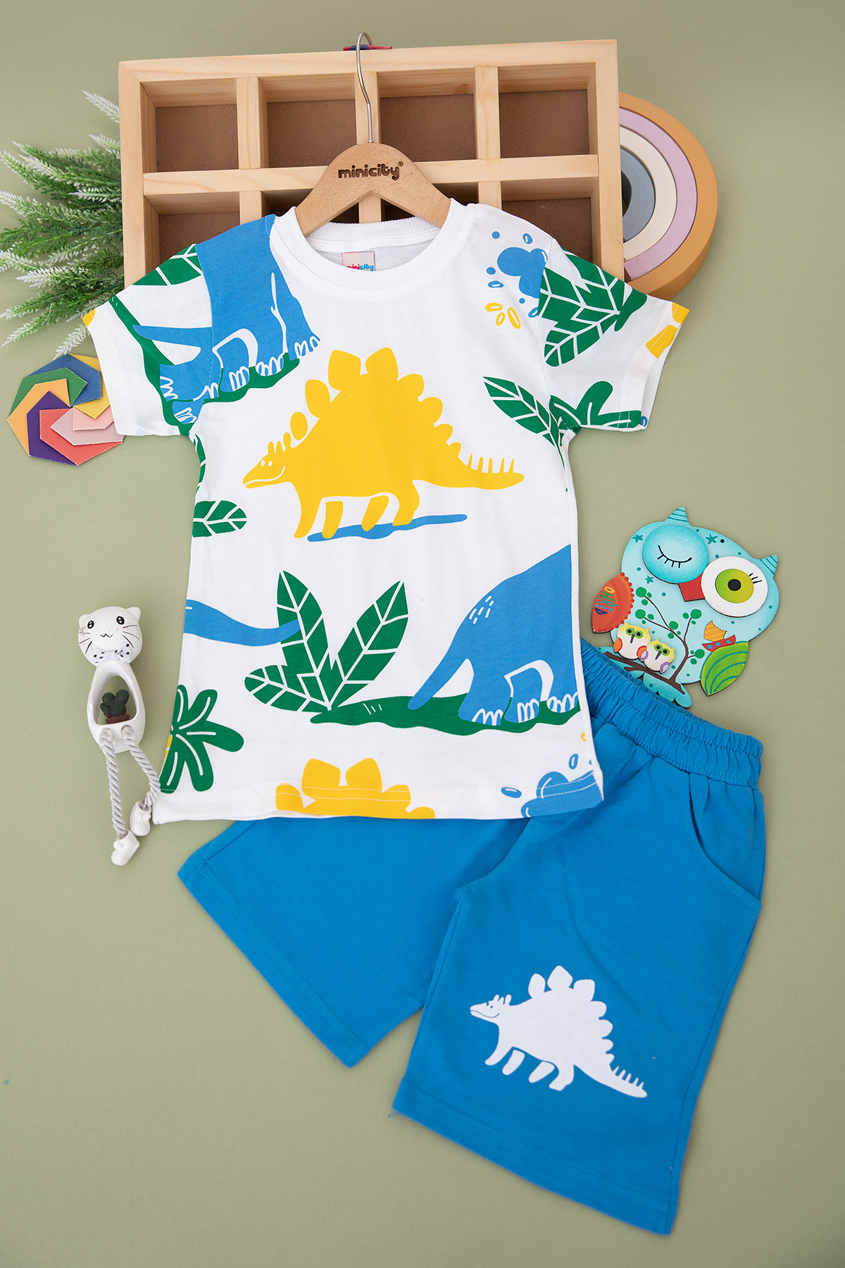 Erkek Çocuk Yapraklı Dinazor Şortlu Takım (4-8 Yaş)