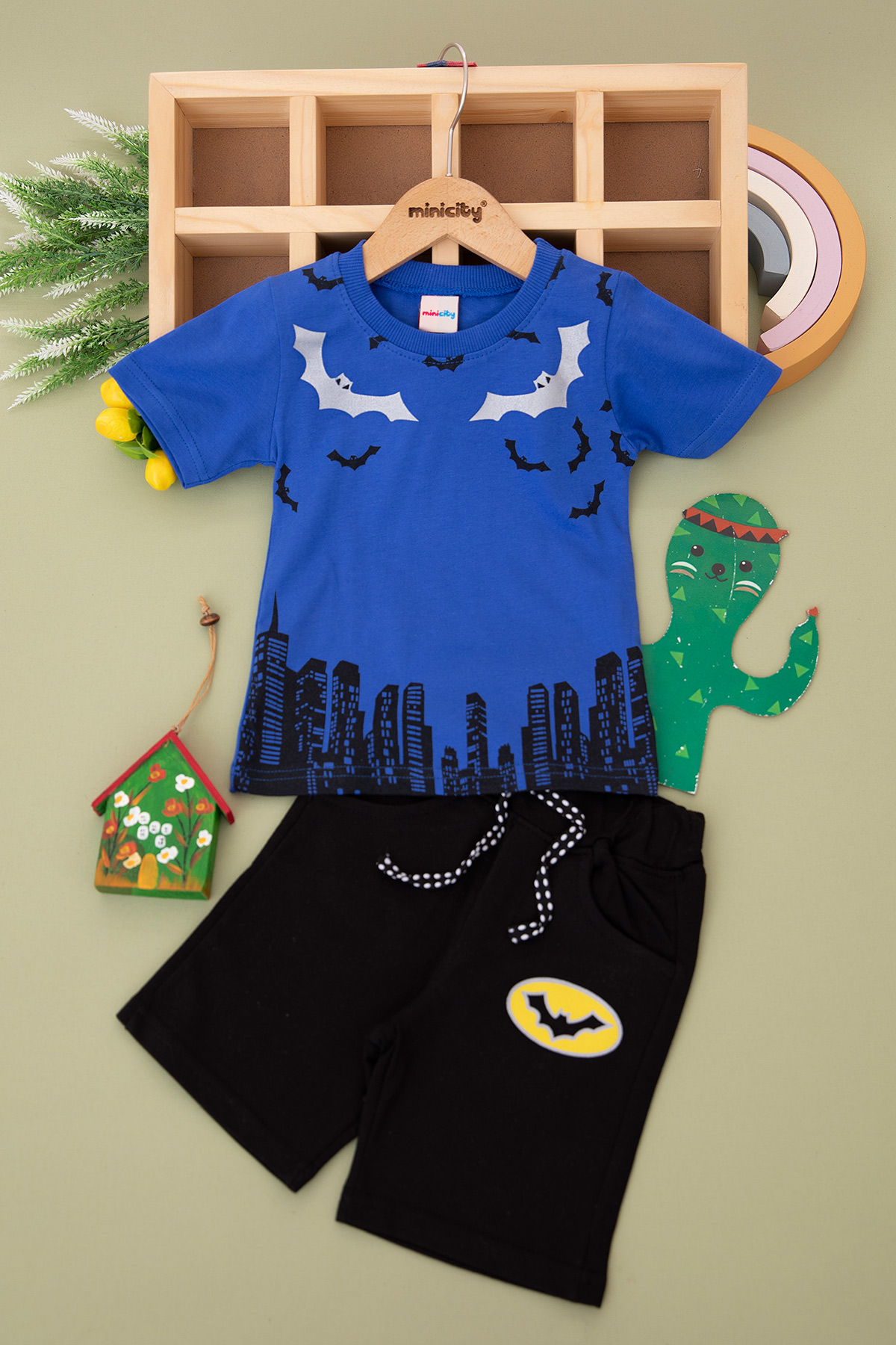 Erkek Çocuk Yarasa Şehir Baskılı Şortlu Takım - 4030 (1-4 Yaş)