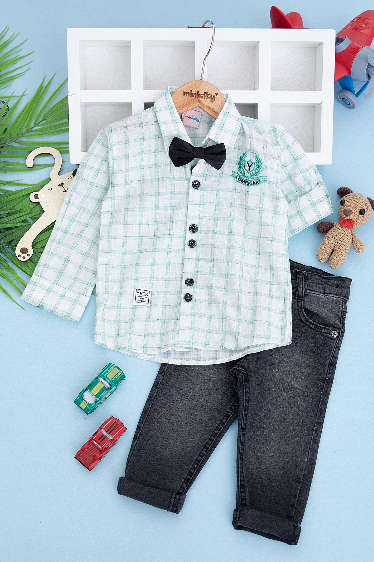 Erkek Çocuk Yavrucak Nakışlı Gömlekli İkili Takım - 3599 (1-4 Yaş)
