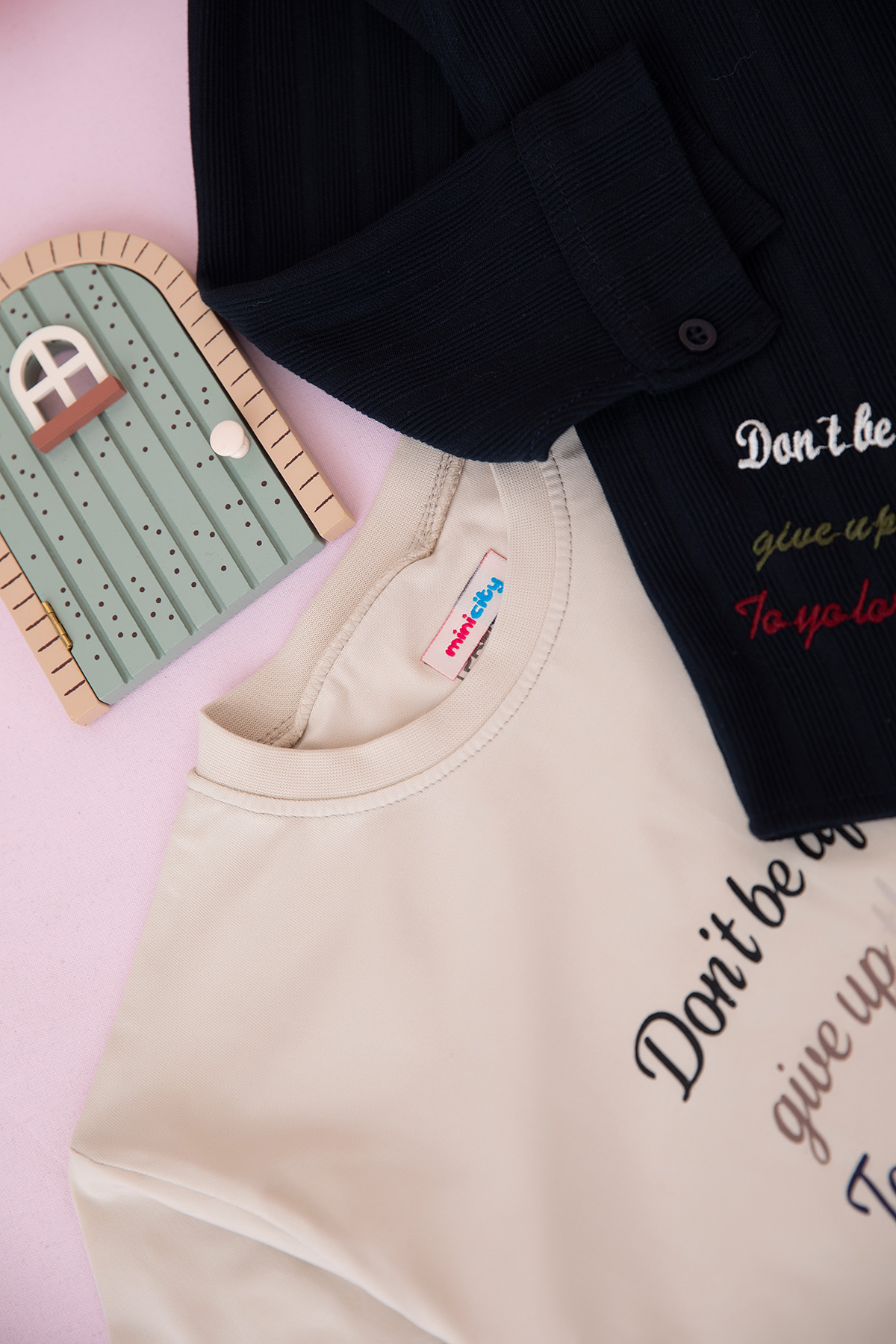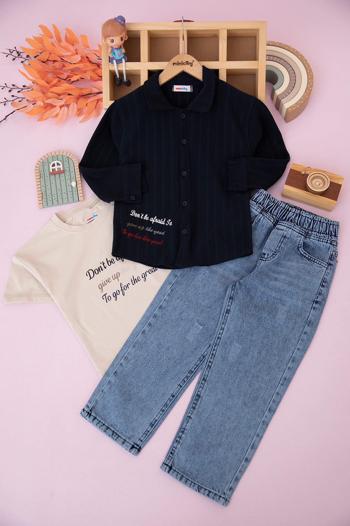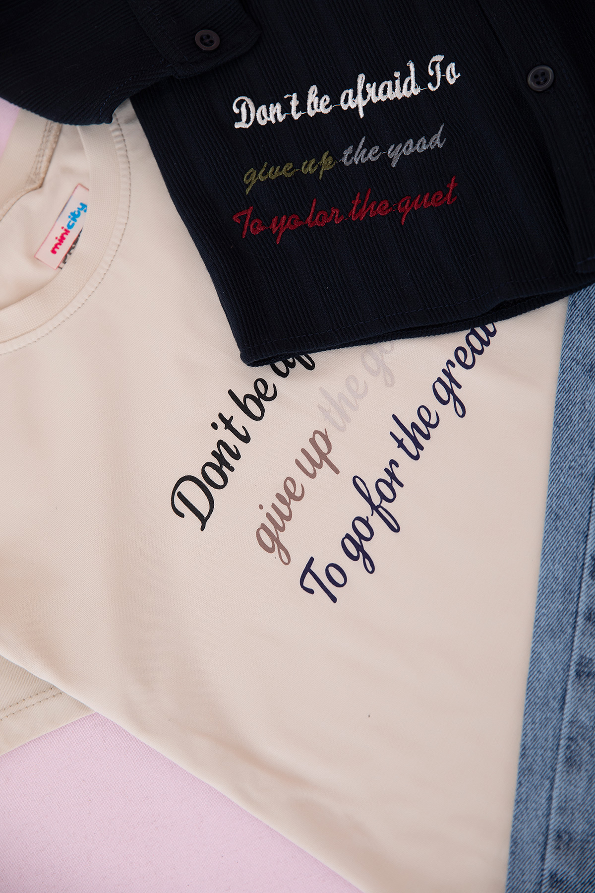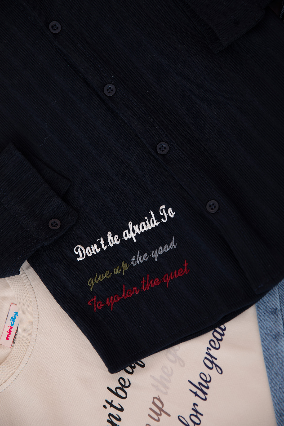 Erkek Çocuk Yazı Nakışlı Gömlekli Takım - 70570 (5-12 Yaş)