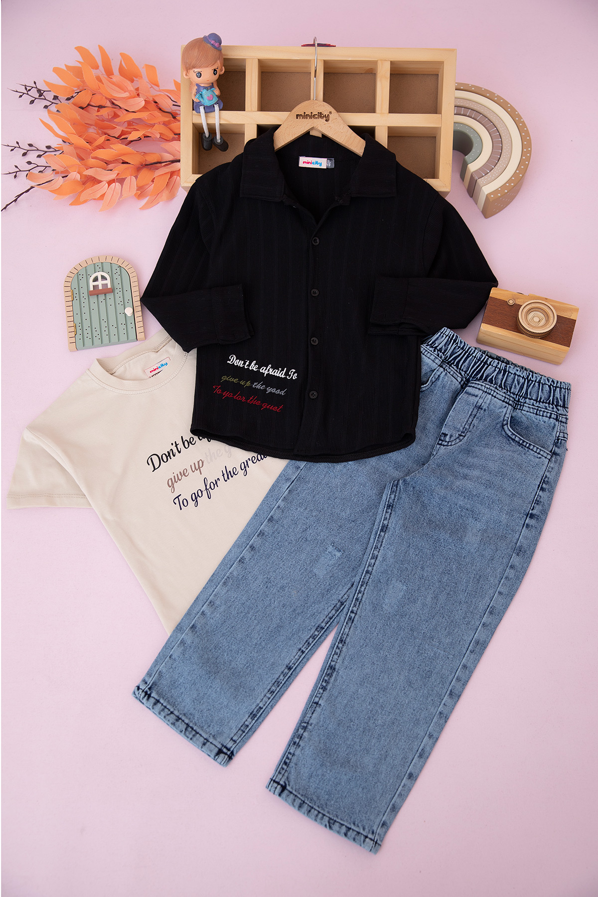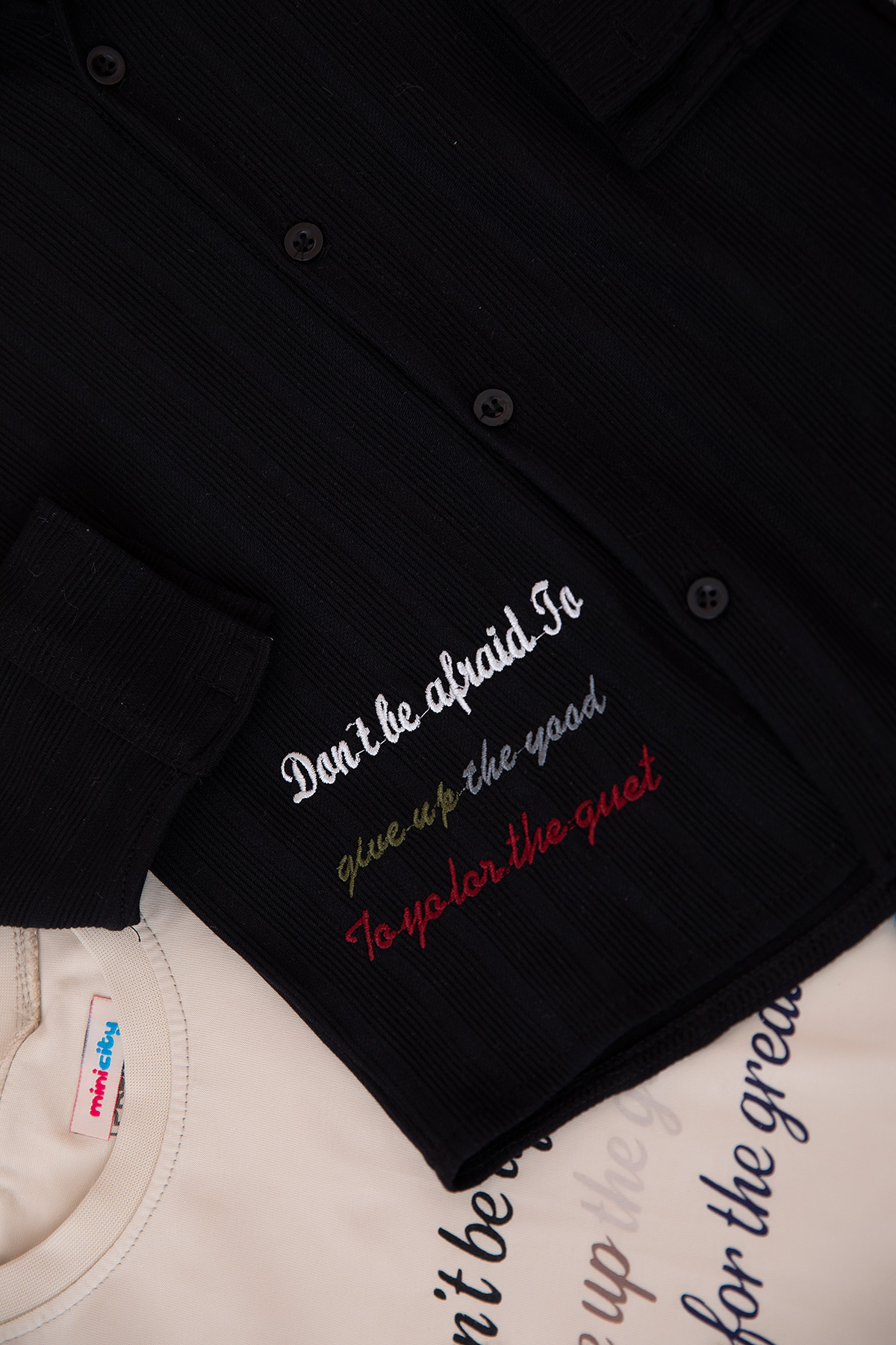 Erkek Çocuk Yazı Nakışlı Gömlekli Takım - 70570 (5-12 Yaş)