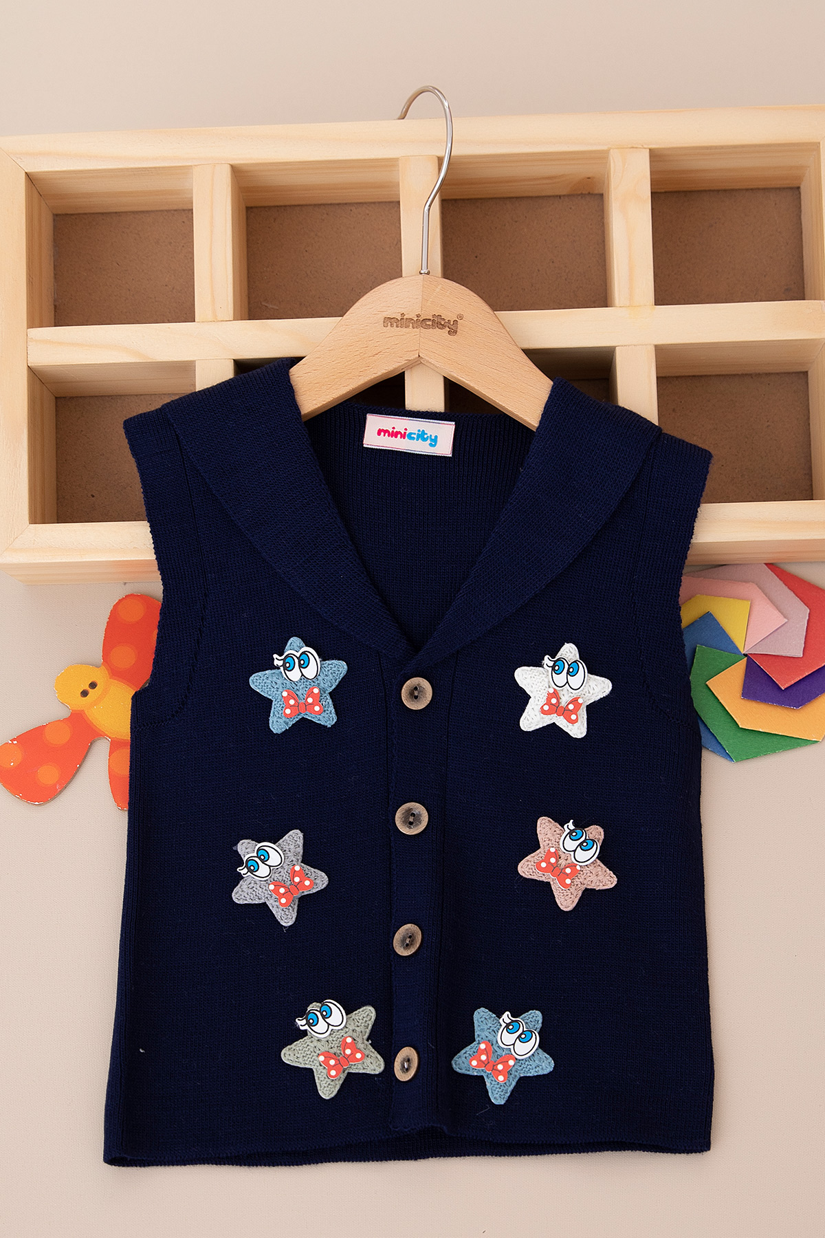Erkek Çocuk Yıldızlı Ata Yaka Triko Yelek - 503 (1-5 Yaş)