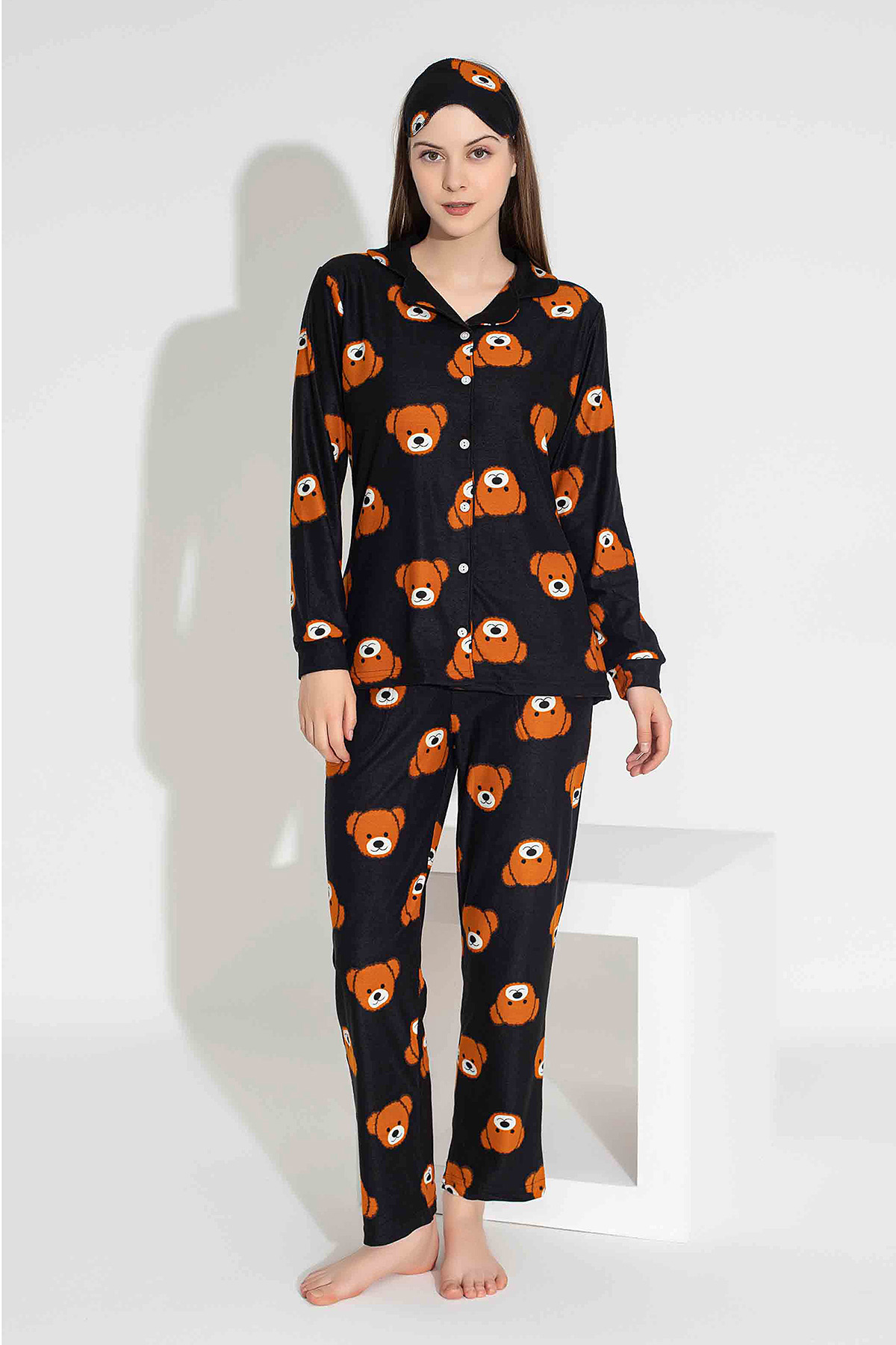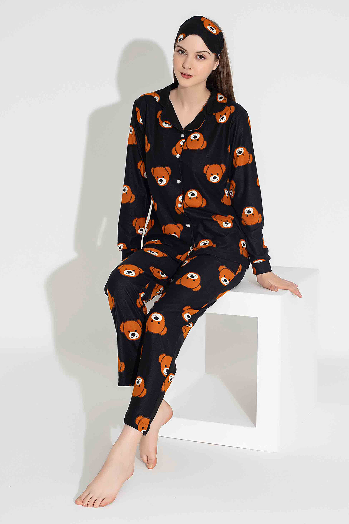Kadın Köpek Baskılı Pijama Takımı - 6401-1