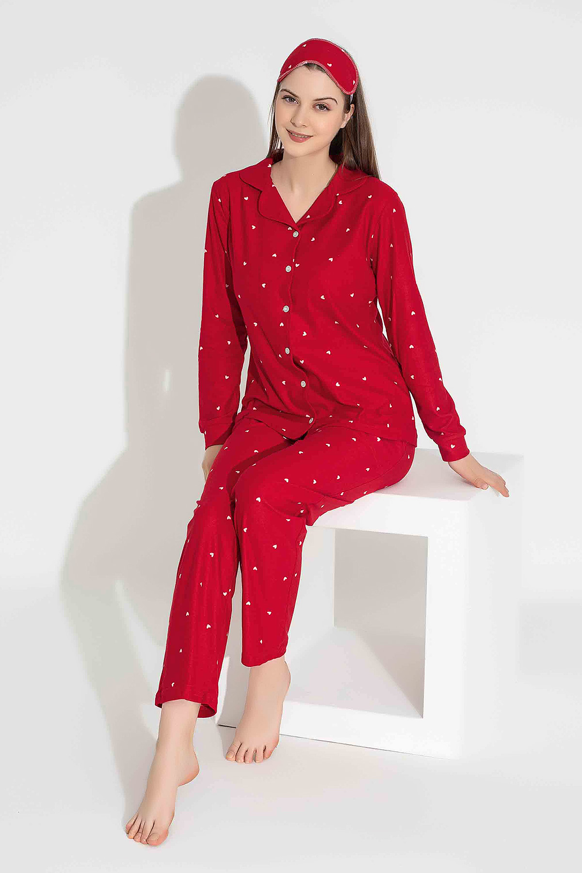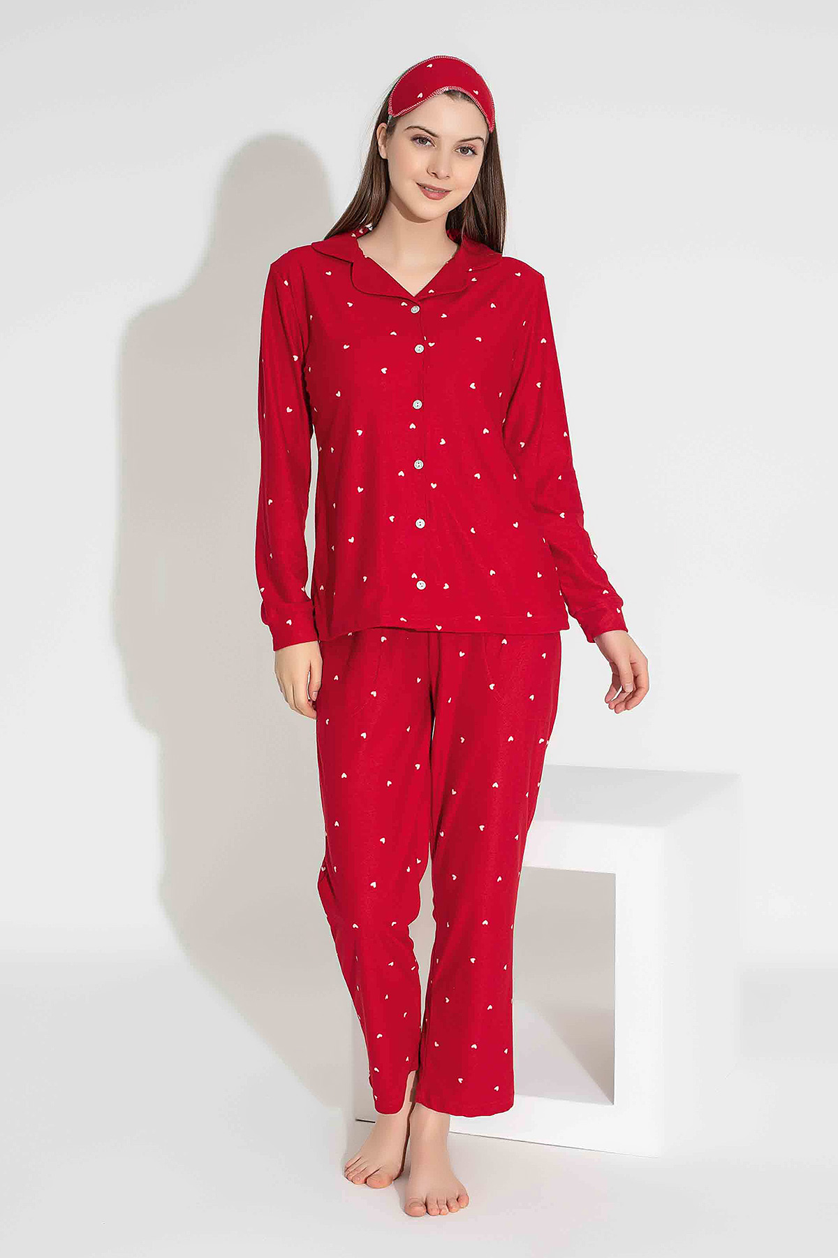 Kadın Minik Kalp Baskılı Pijama Takımı - 6401-5