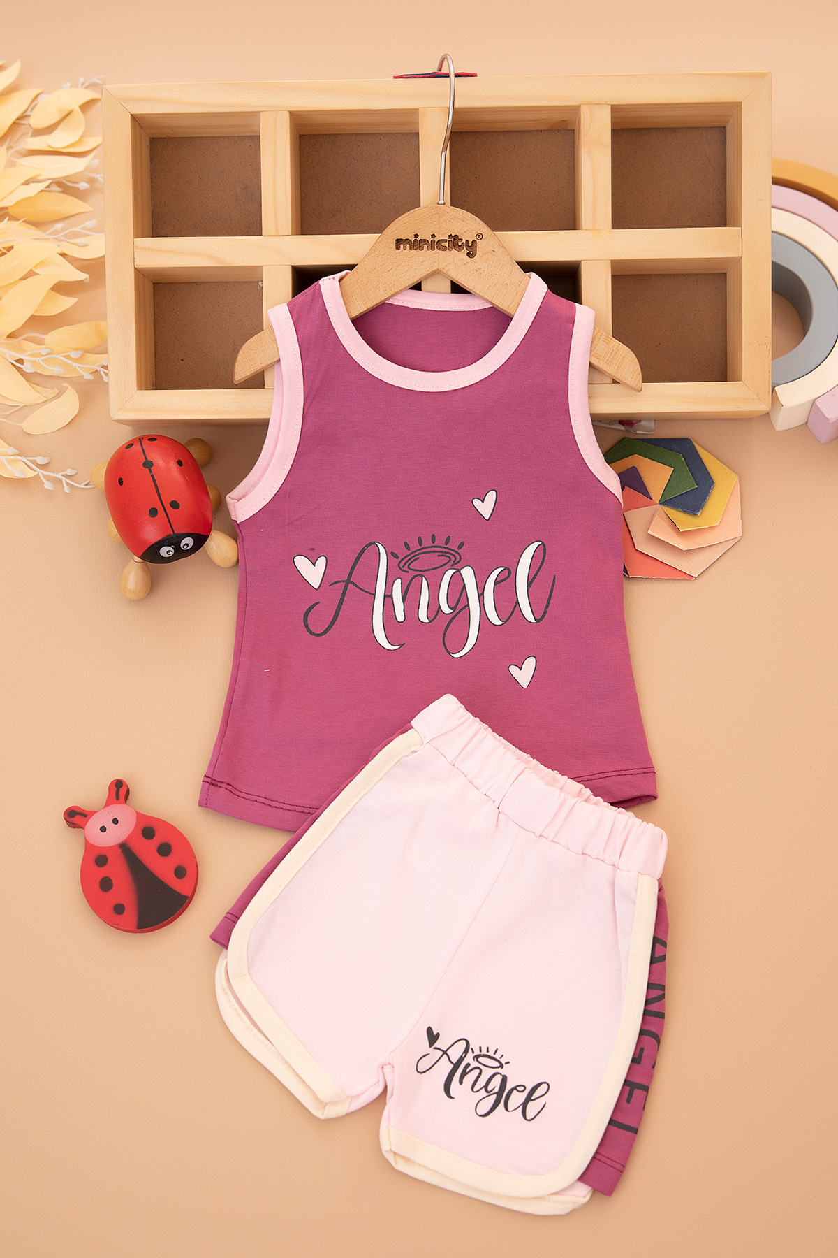 Kız Bebek Angel Baskılı Şortlu Takım - 2543 (6-24 Ay)
