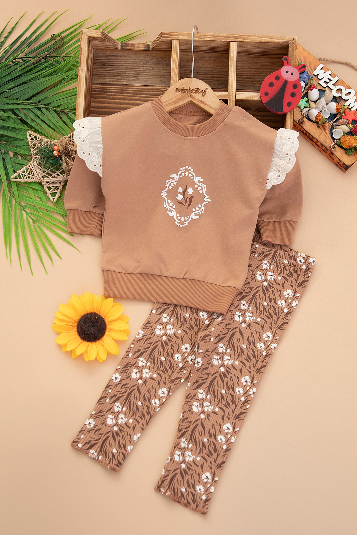 Kız Bebek Antik Çiçek Nakışlı Takım - 2807 (6-24 Ay)