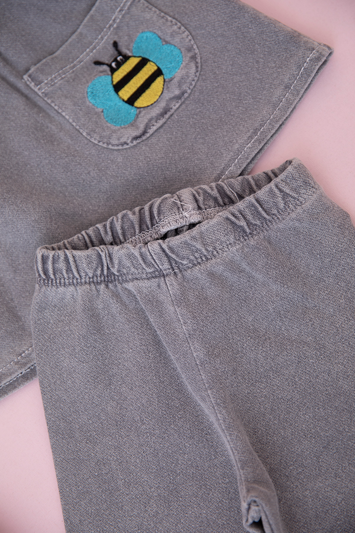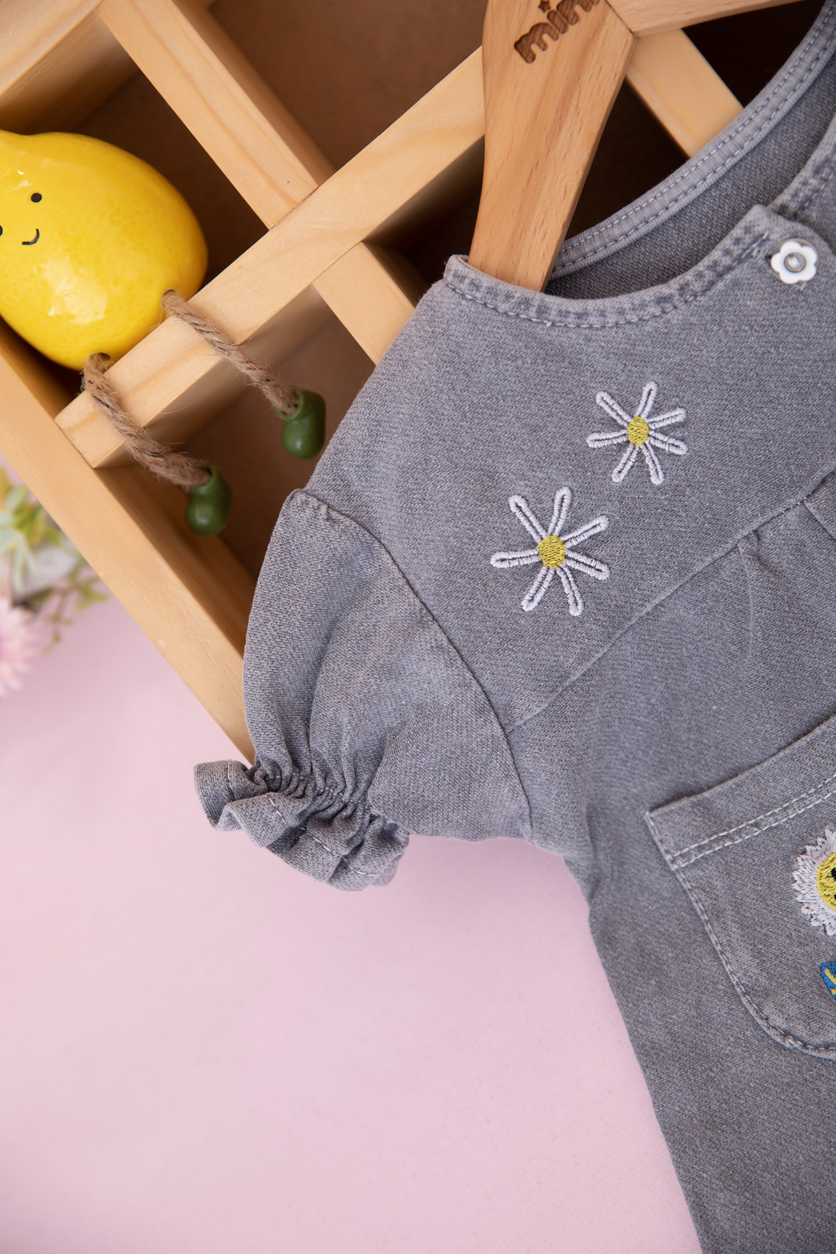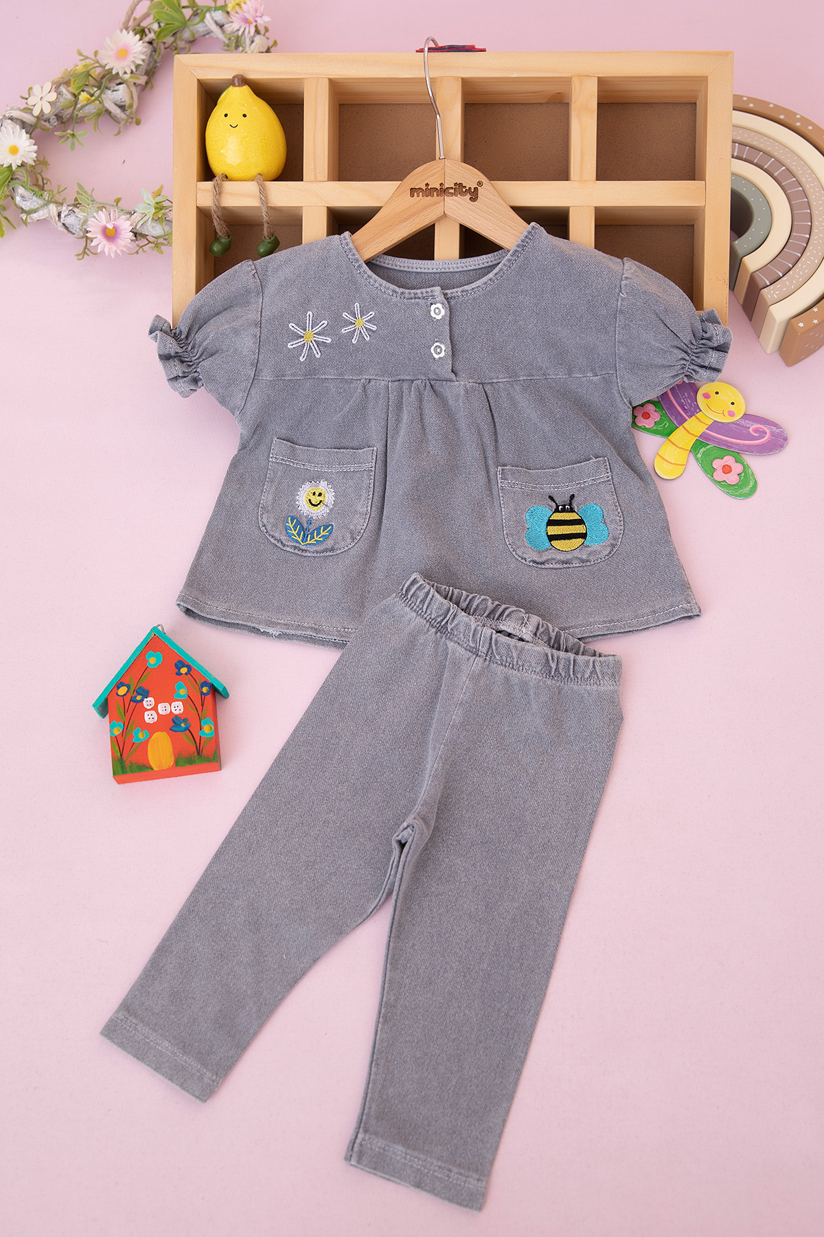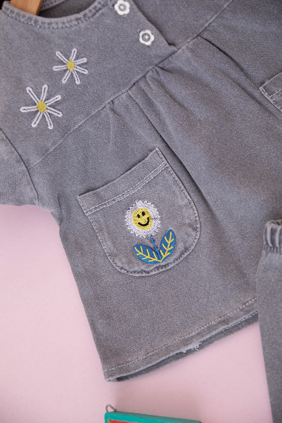 Kız Bebek Arı Papatya Nakışlı Kot Takım - 0309 (9-24 Ay)