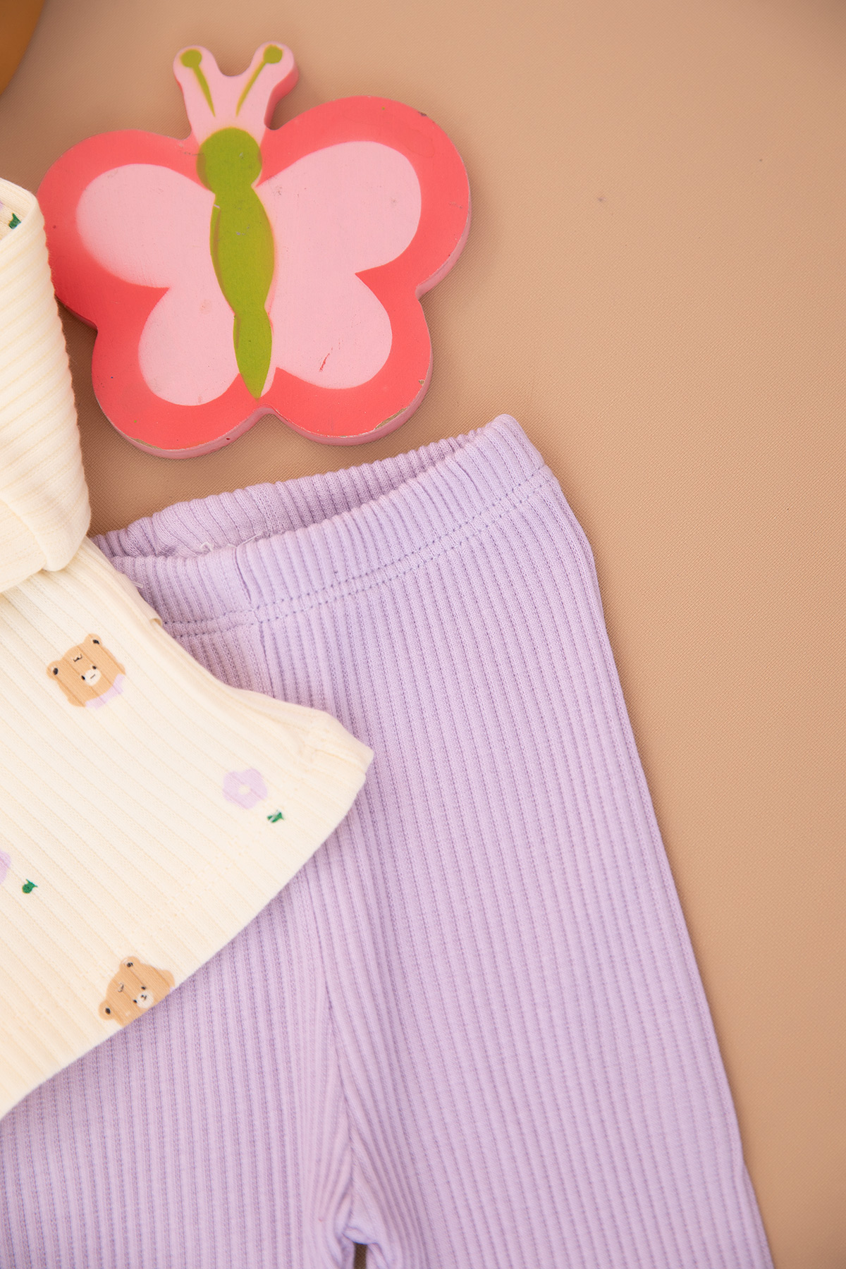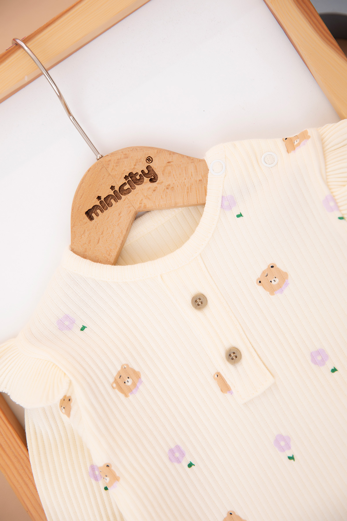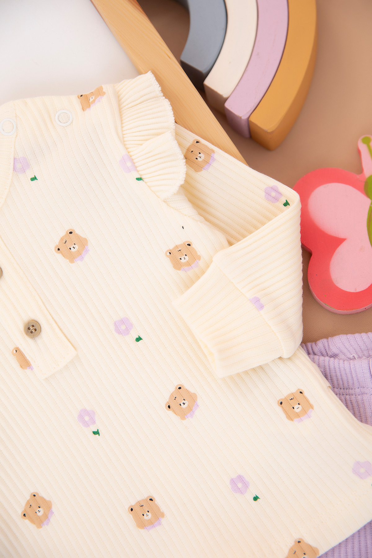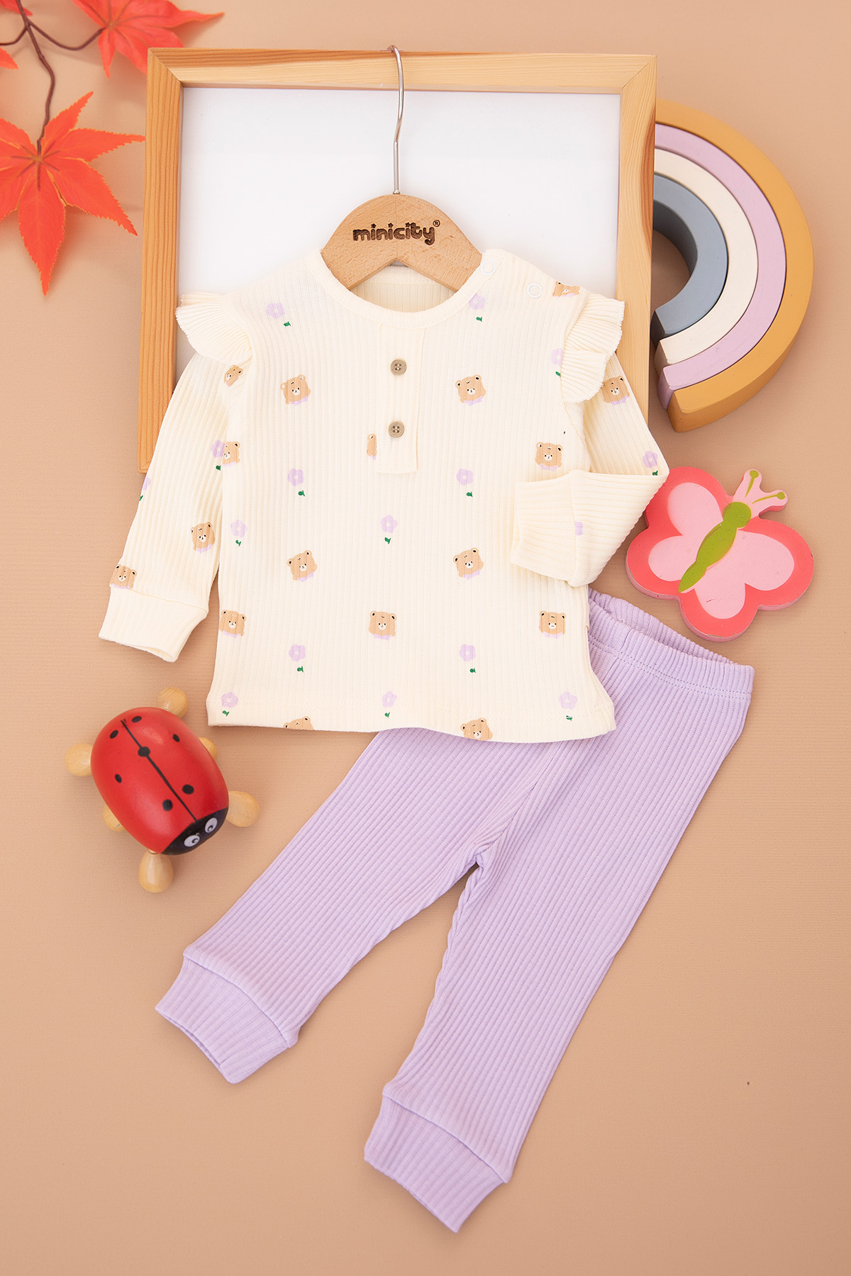 Kız Bebek Ayı Baskılı Fitilli Takım - 1279 (3-12 Ay)