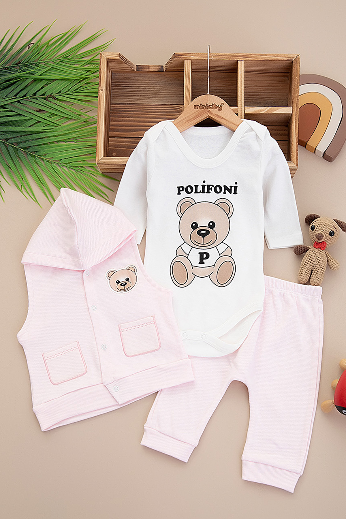 Kız Bebek Ayı Baskılı Yelekli Takım - 1670 (3-9 Ay)