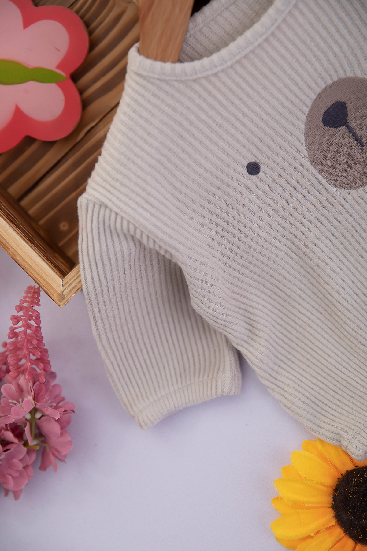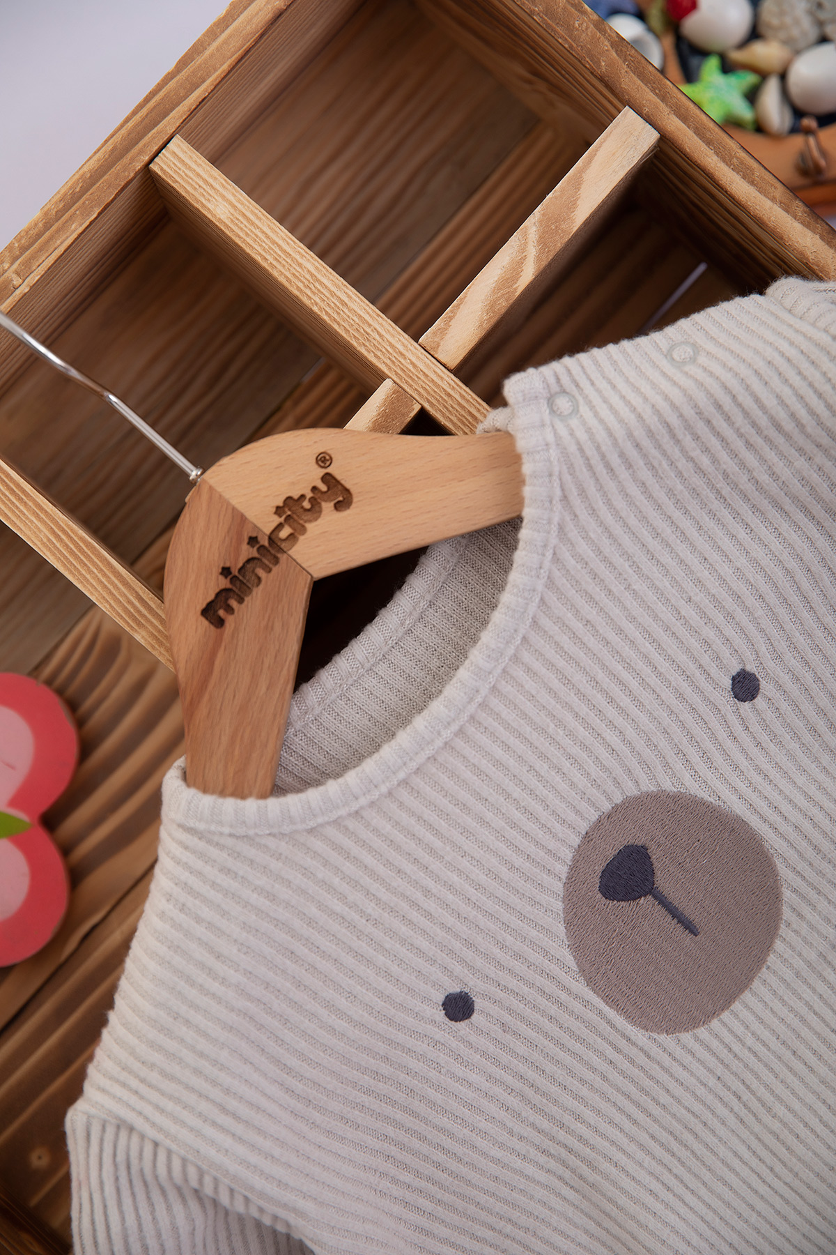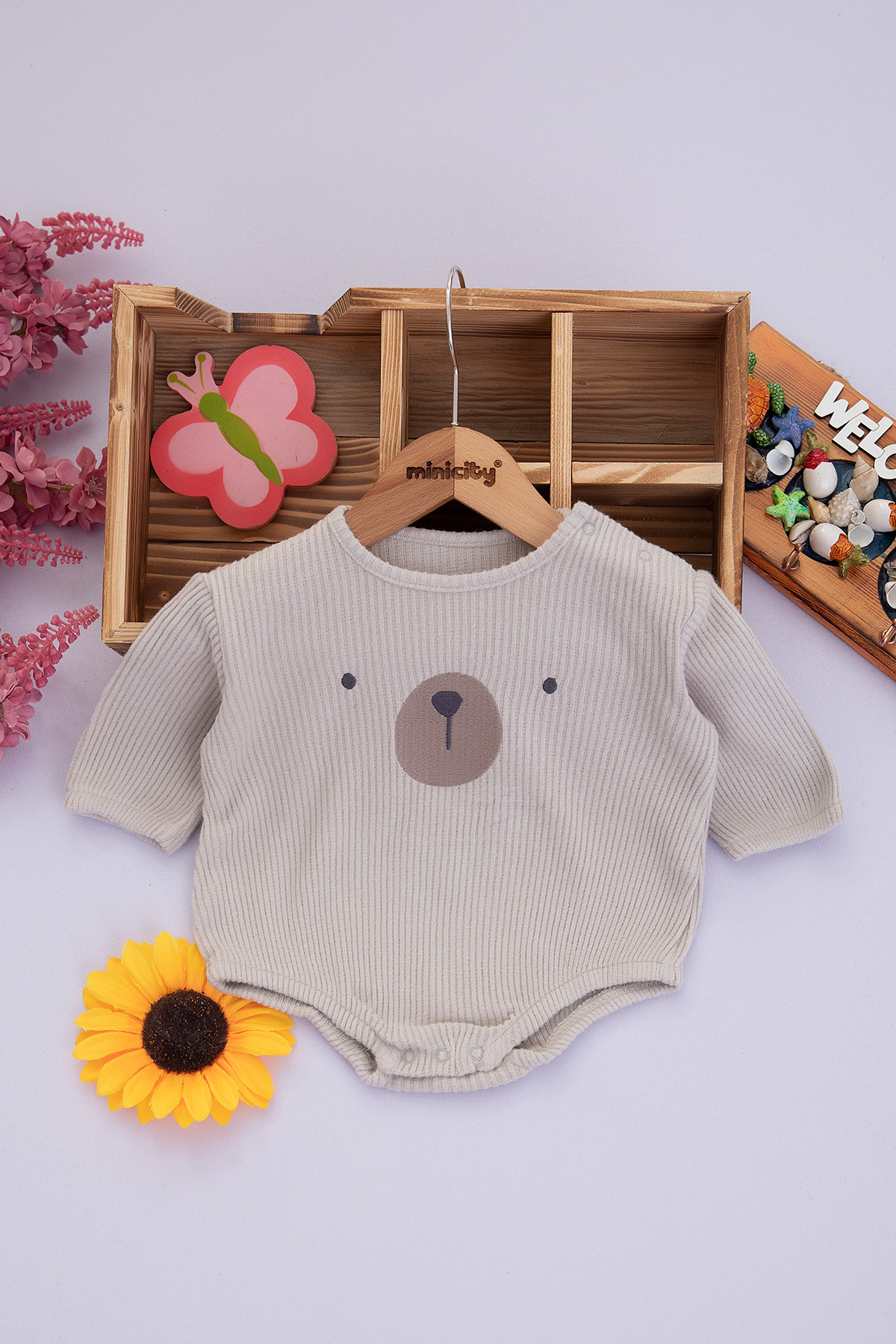 Kız Bebek Ayı Surat Uzun Kol Çıtçıtlı Body (0-24 Ay)