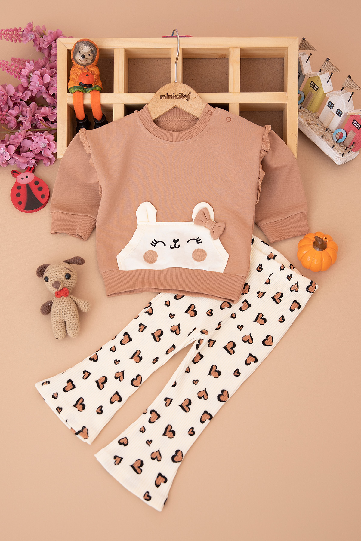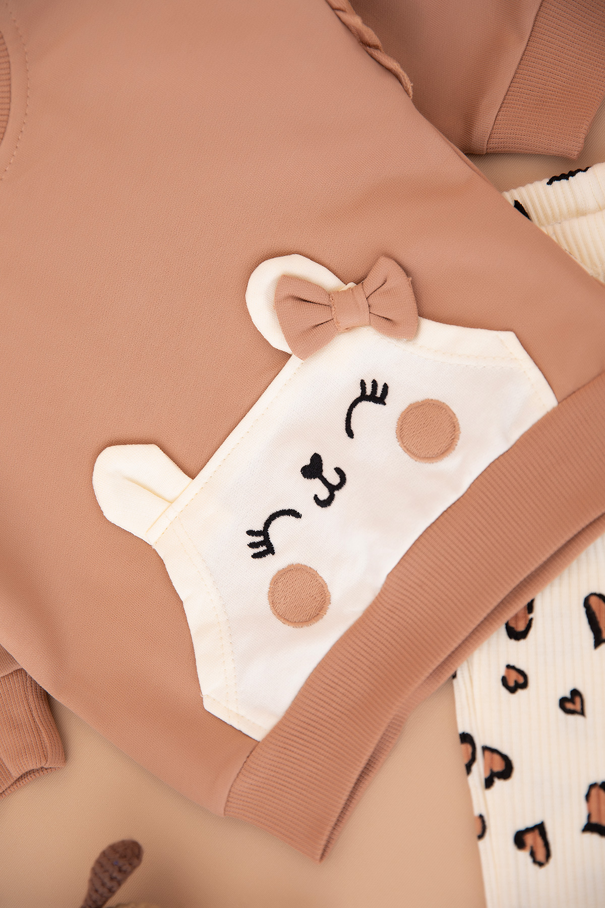 Kız Bebek Ayıcık Cepli Kulaklı Takım - 2814 (6-24 Ay)