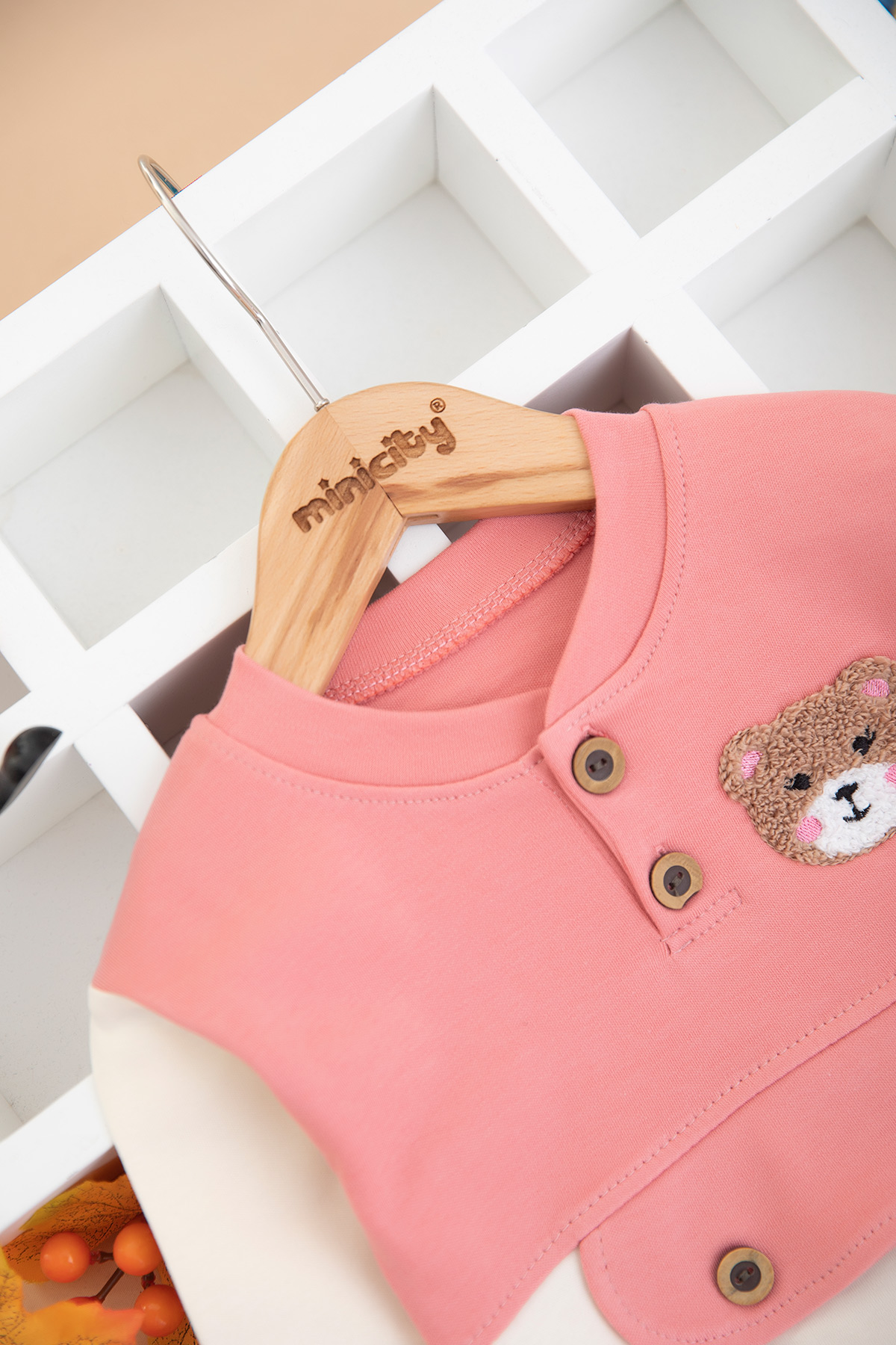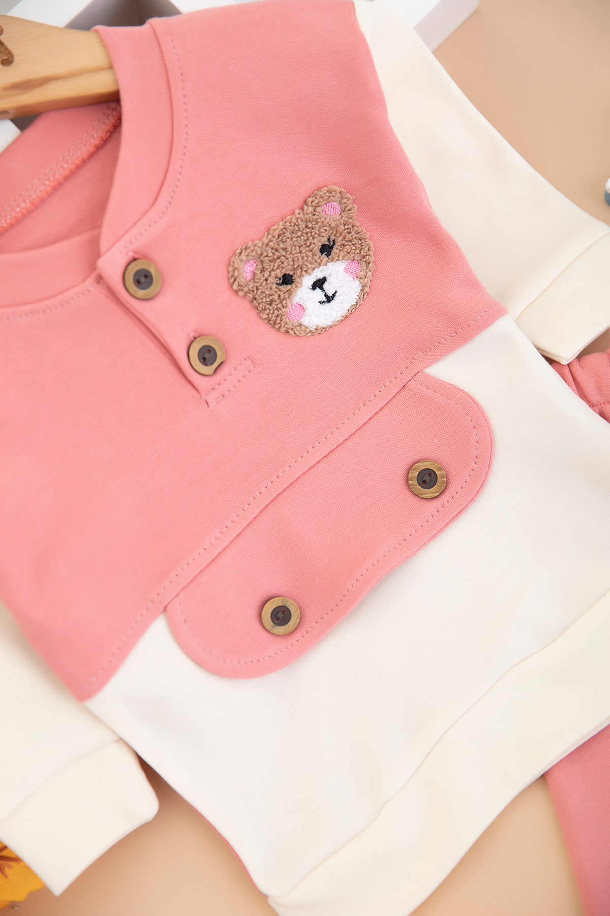 Kız Bebek Ayıcıklı Düğmeli Takım - 1093 (6-18 Ay)