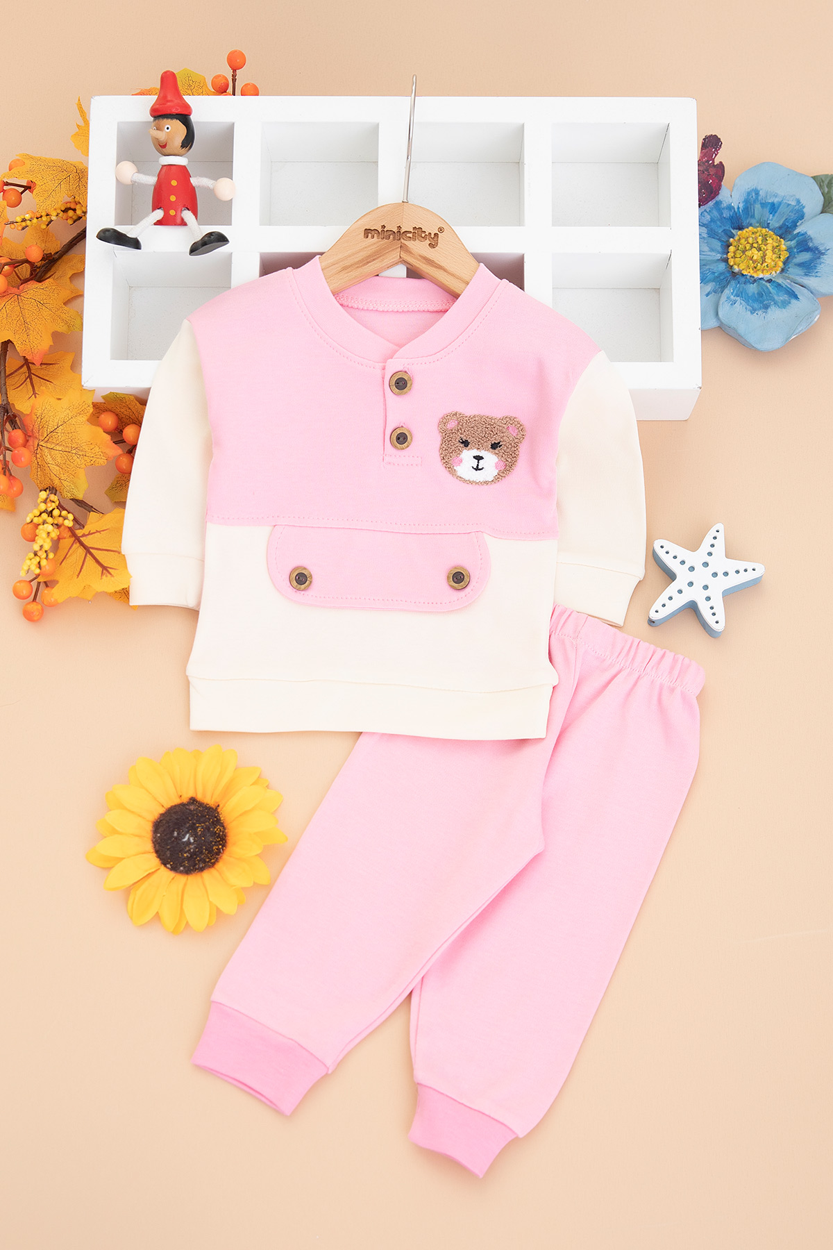 Kız Bebek Ayıcıklı Düğmeli Takım - 1093 (6-18 Ay)