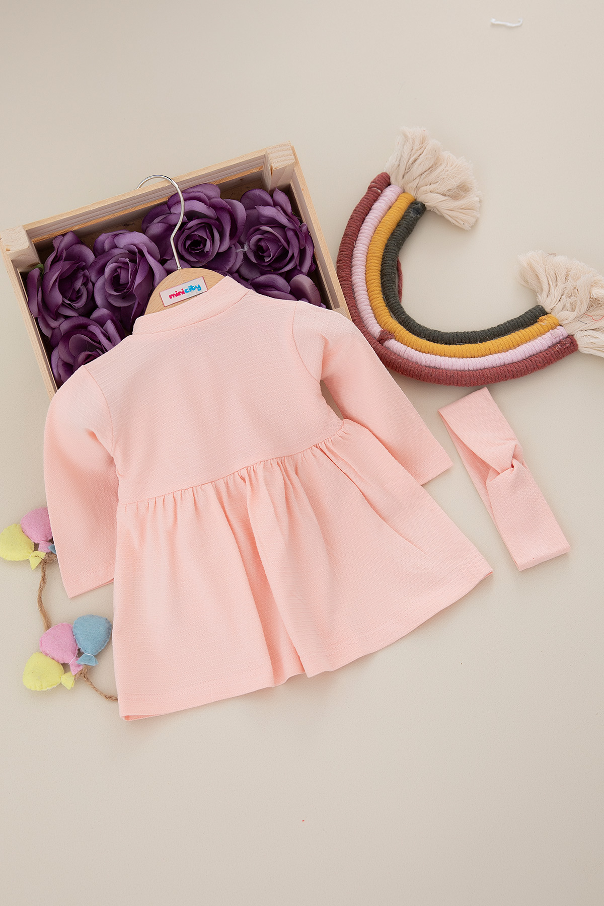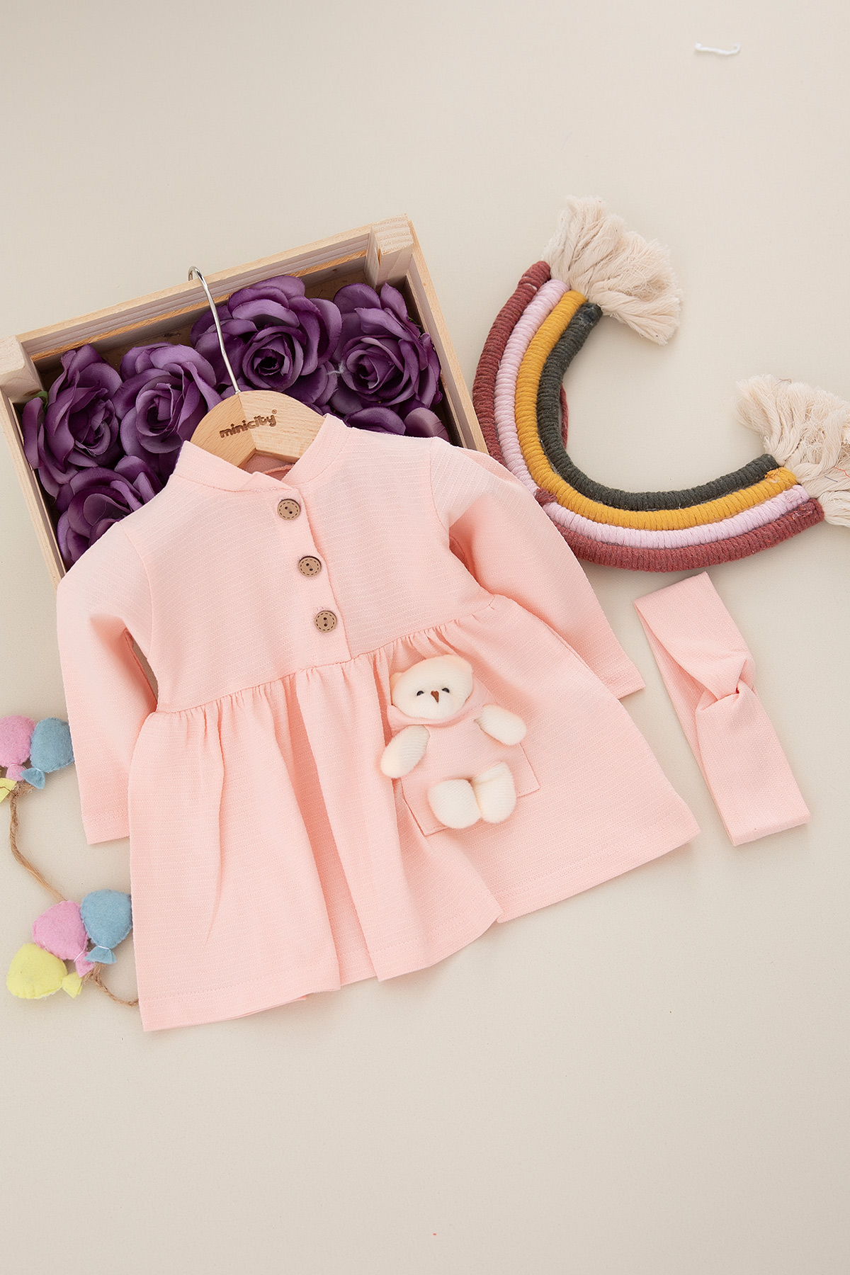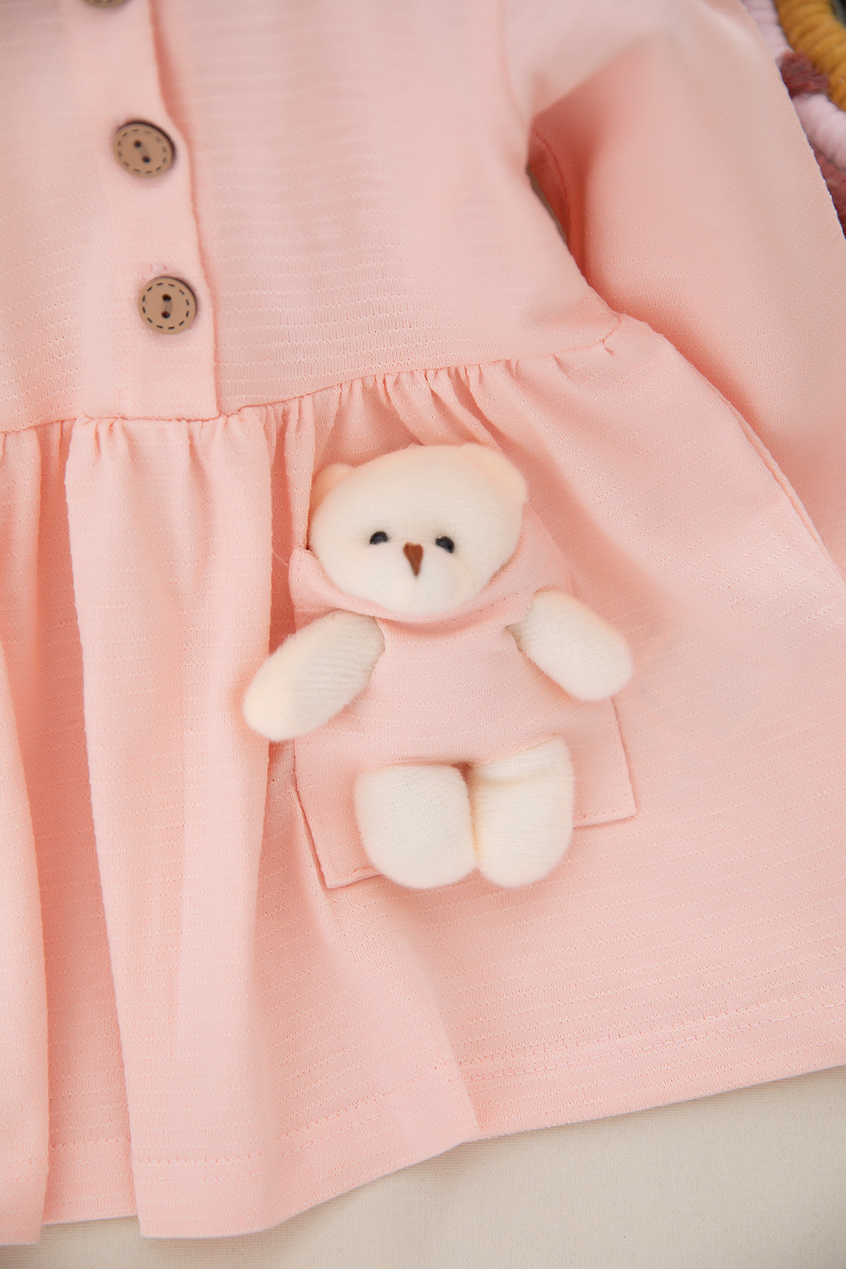 Kız Bebek Ayıcıklı Uzun Kol Elbise - 107 (9-24 Ay)