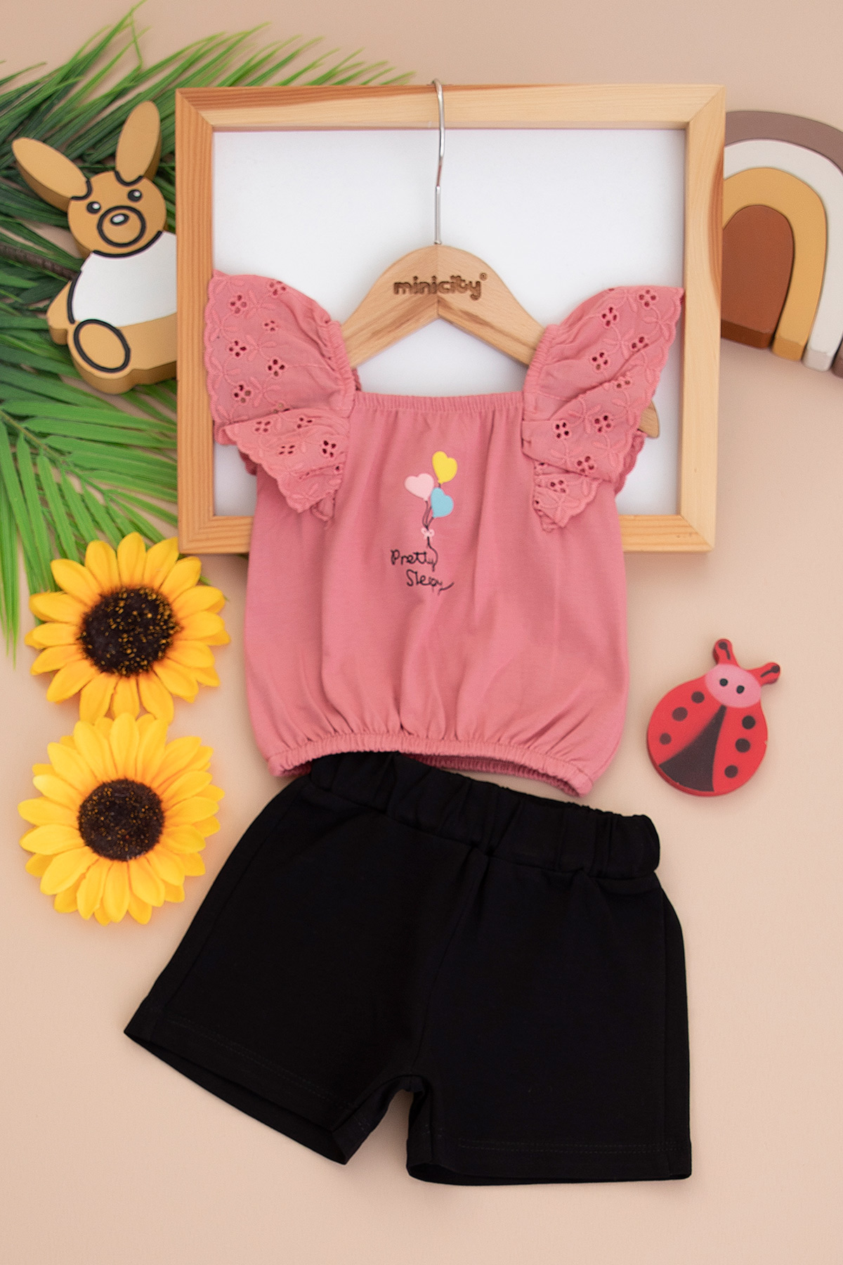 Kız Bebek Balon Baskılı Şortlu Takım - 24387 (9-24 Ay)