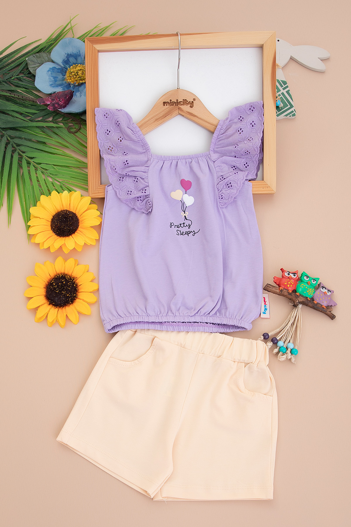 Kız Bebek Balon Baskılı Şortlu Takım - 24387 (9-24 Ay)