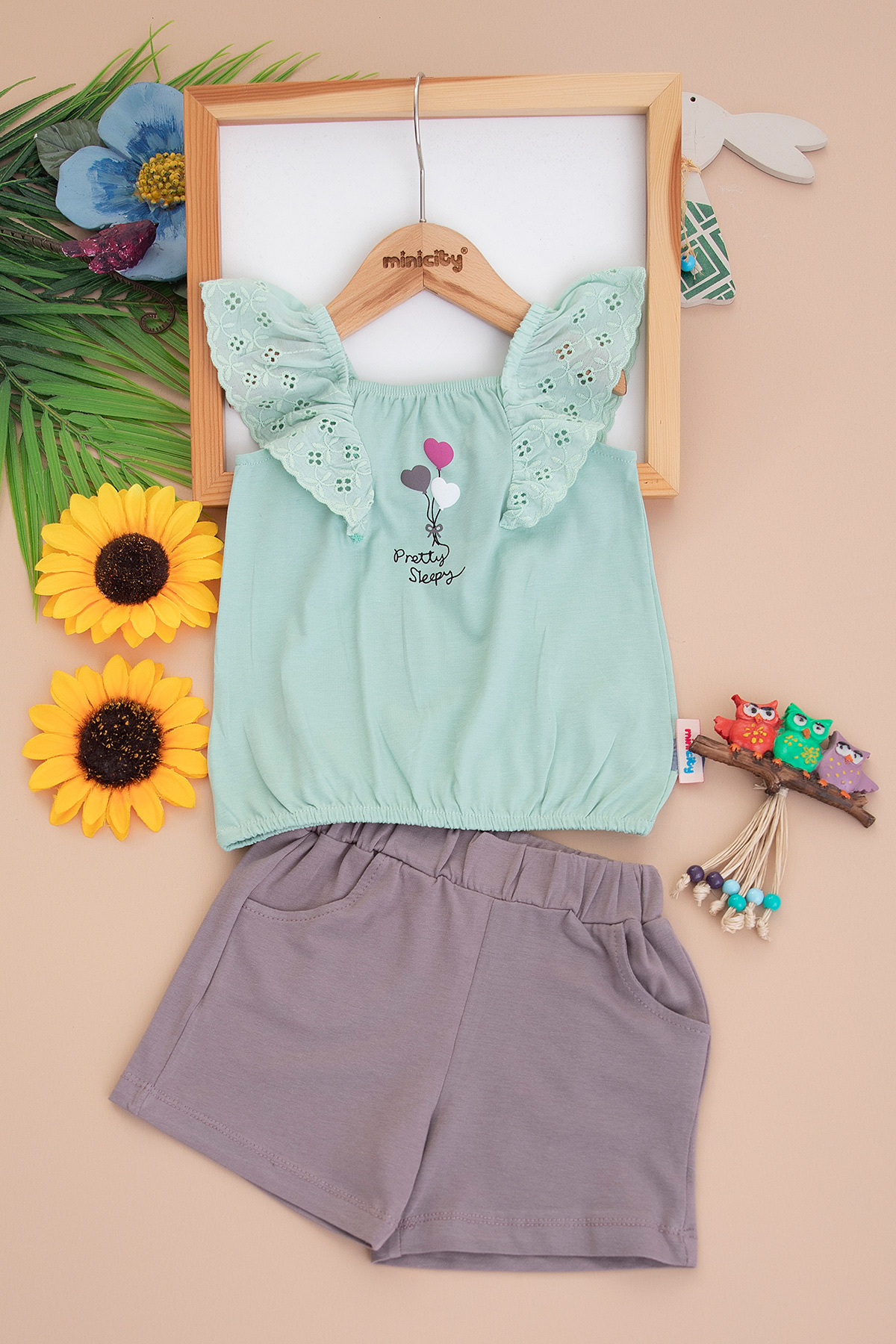 Kız Bebek Balon Baskılı Şortlu Takım - 24387 (9-24 Ay)