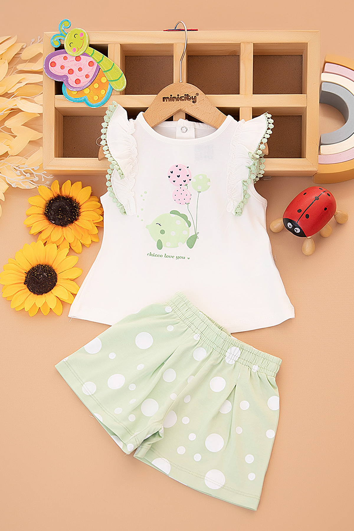 Kız Bebek Balon Baskılı Şortlu Takım -25586 (9-24 Ay)