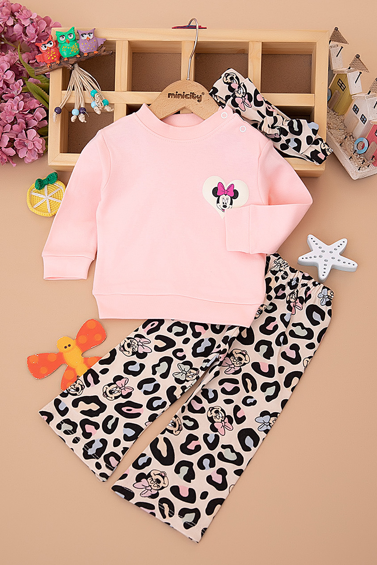 Kız Bebek Bandanalı Miki Baskılı Takım - 0024 (9-24 Ay)