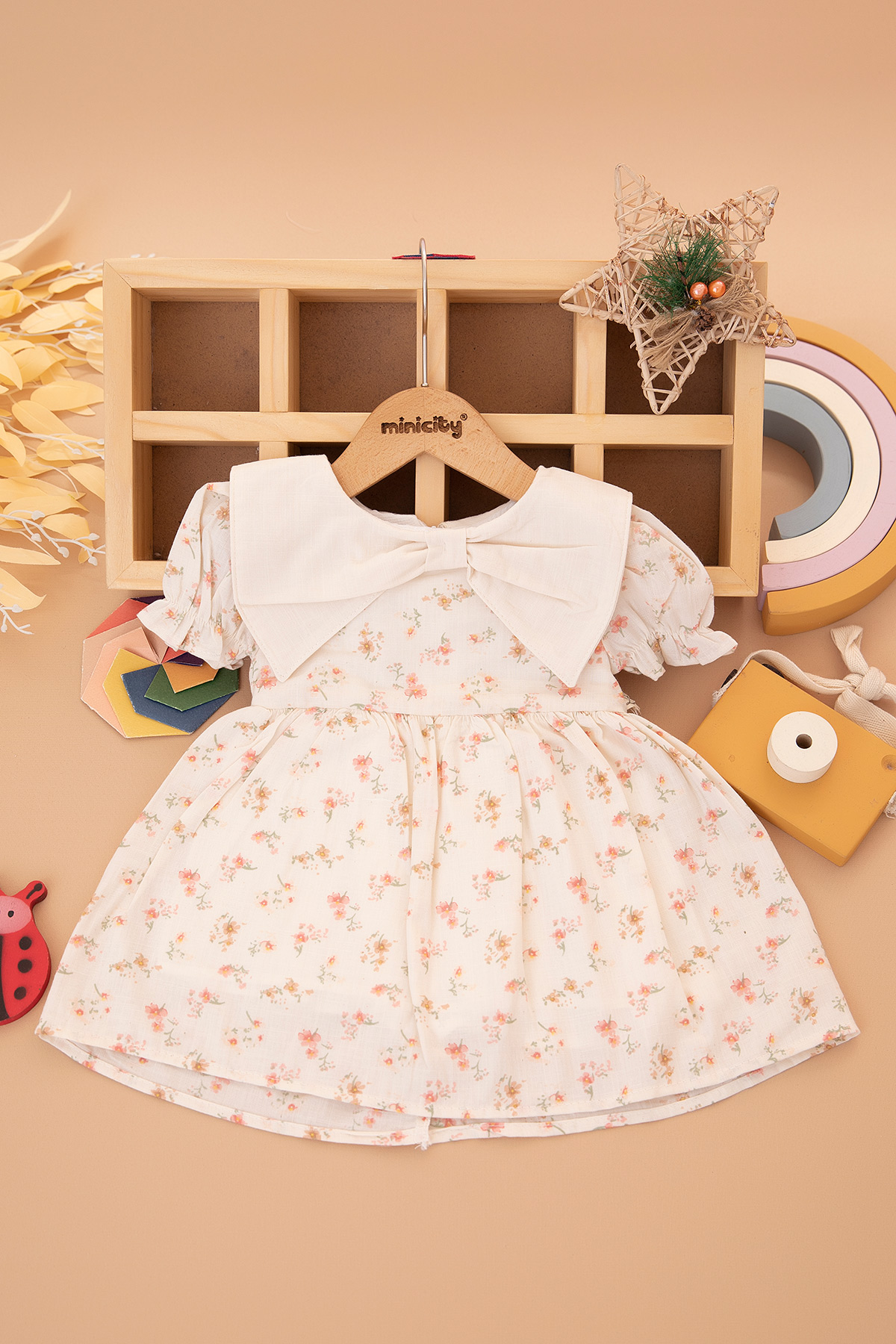 Kız Bebek Baskılı Keten Elbise - 3001 (9-24 Ay)