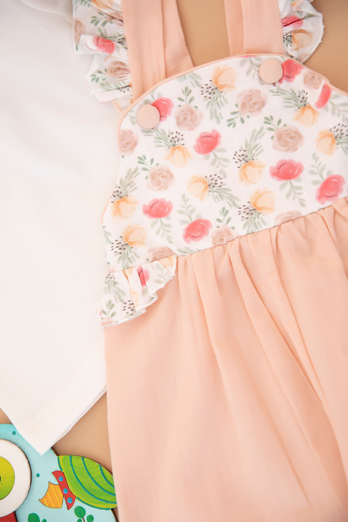 Kız Bebek Baskılı Keten Tulum Salopet - 3177 (9-24 Ay)