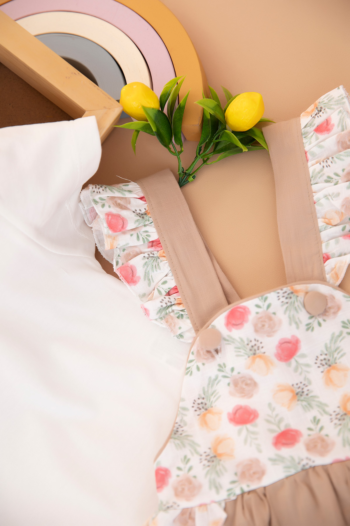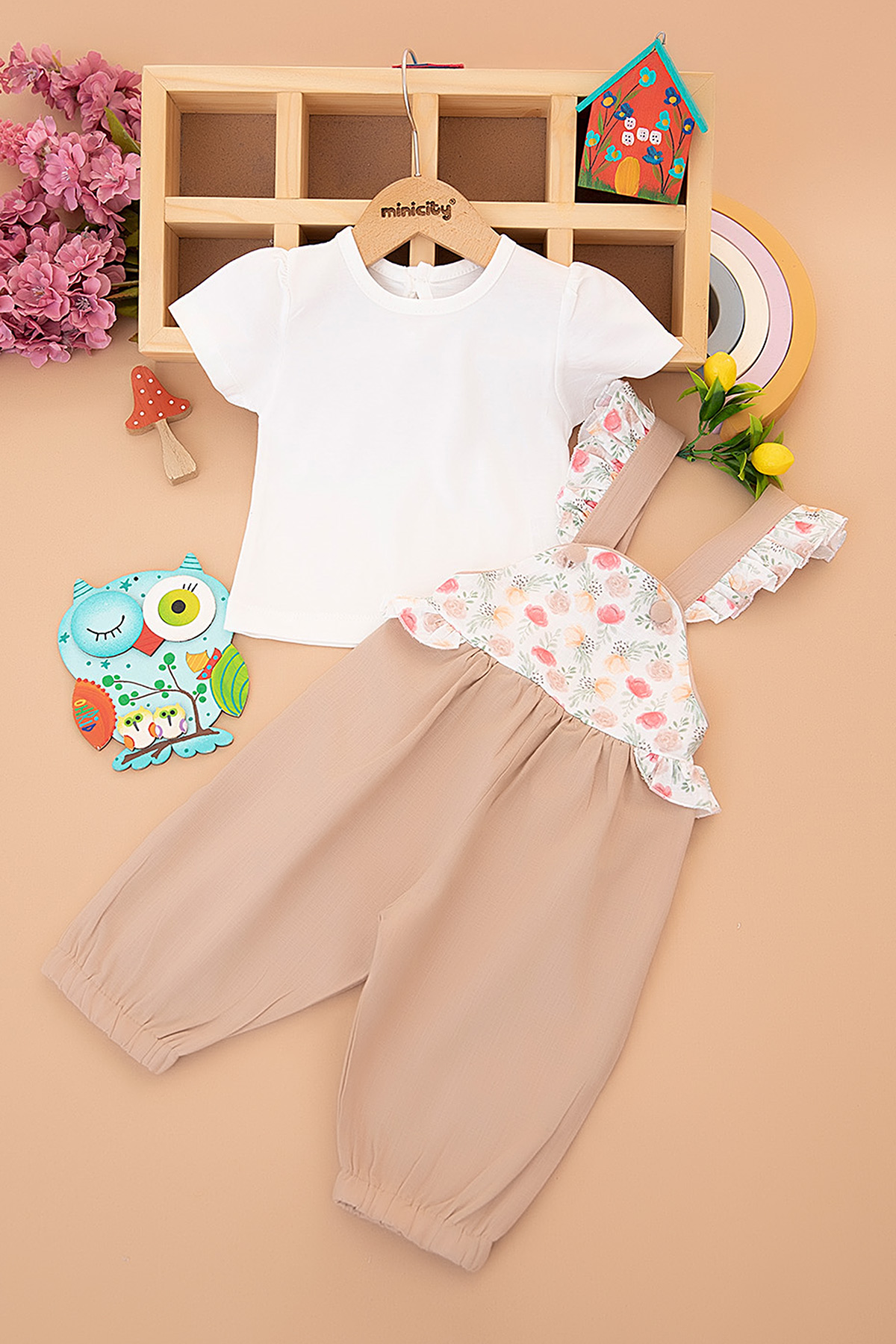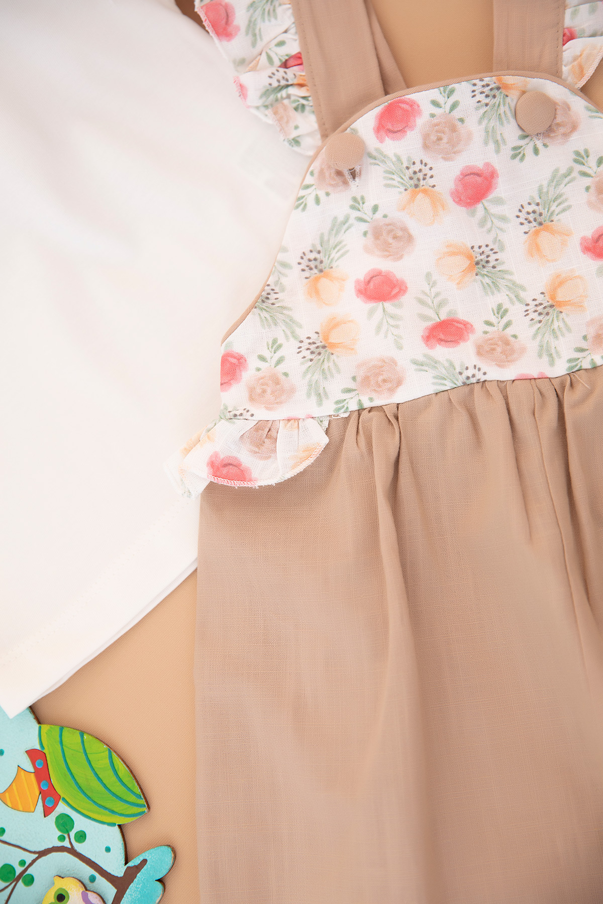 Kız Bebek Baskılı Keten Tulum Salopet - 3177 (9-24 Ay)
