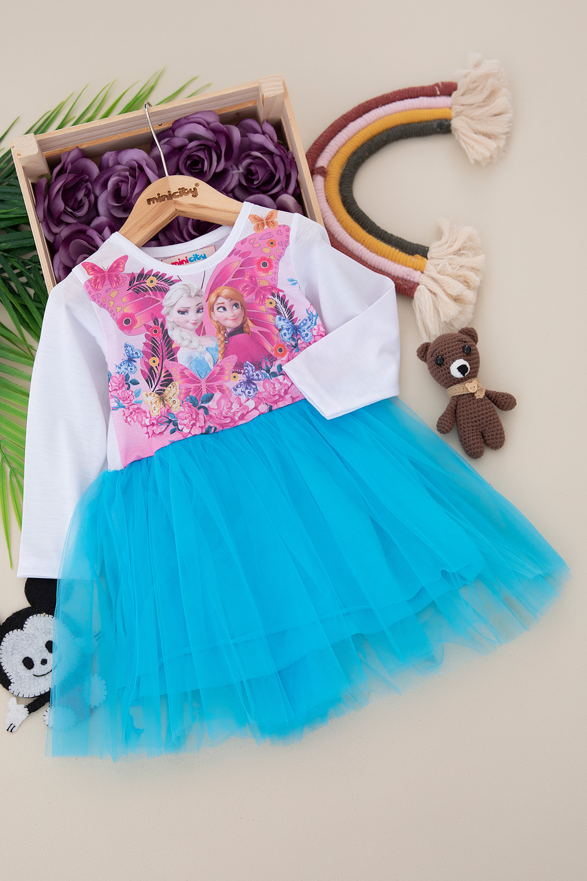 Kız Bebek Baskılı Tüllü Elbise - 444 (3-5 Yaş)